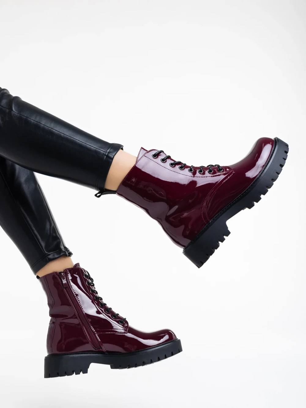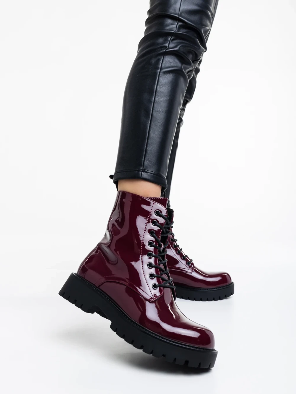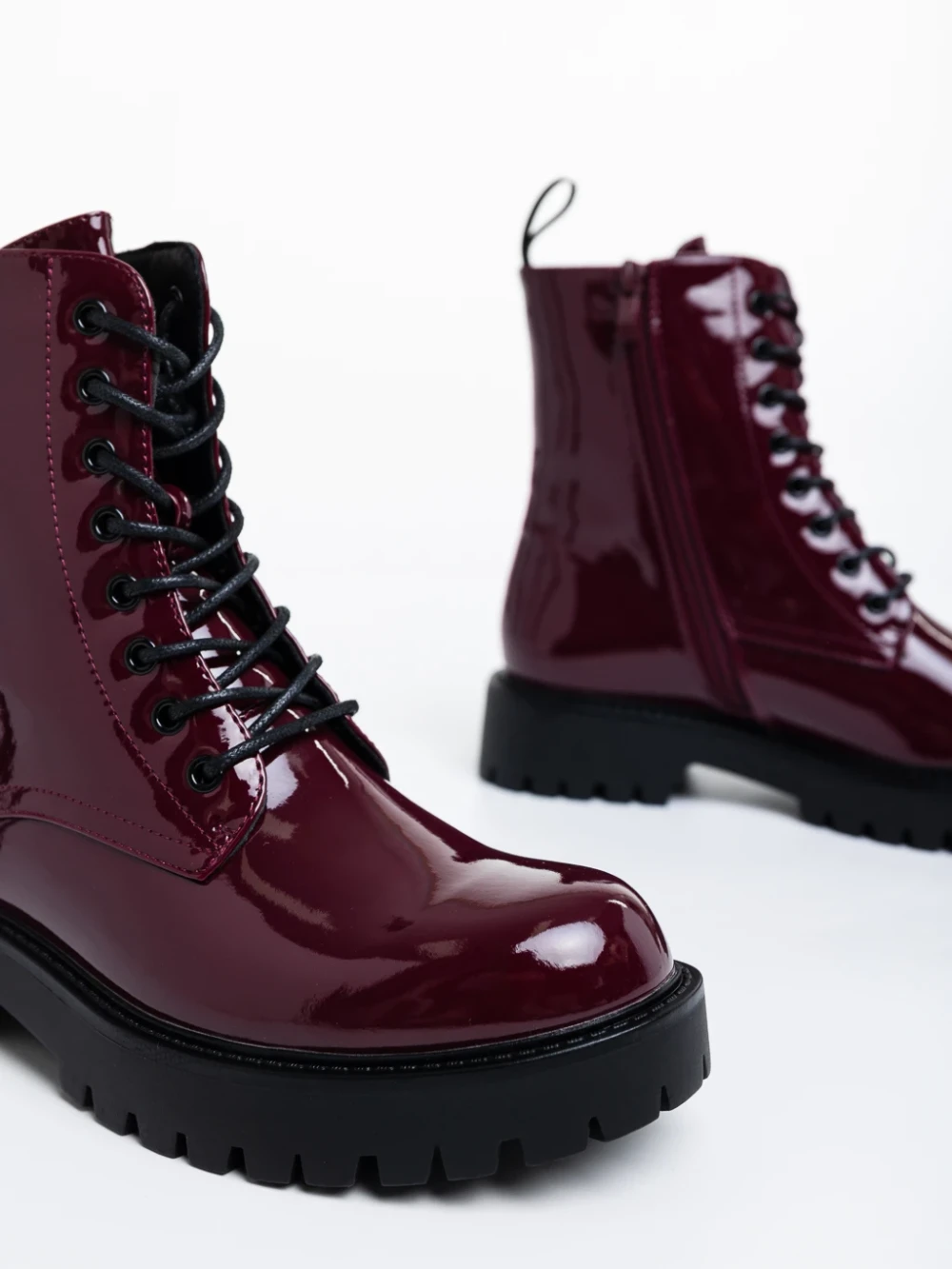 Ghete dama grena din piele ecologica lacuita Mahina Detalii produs
