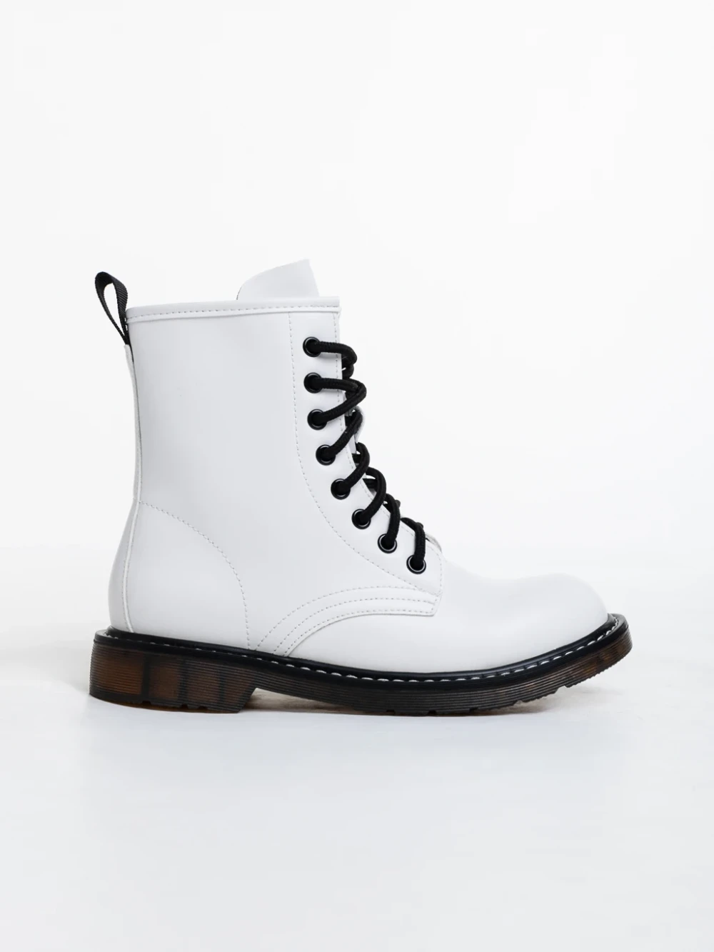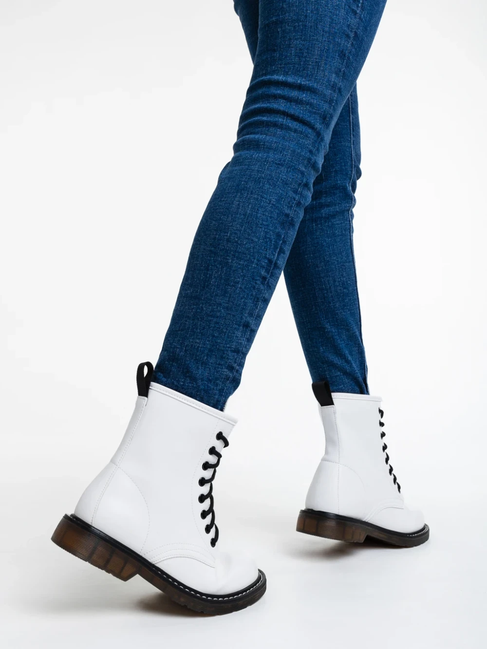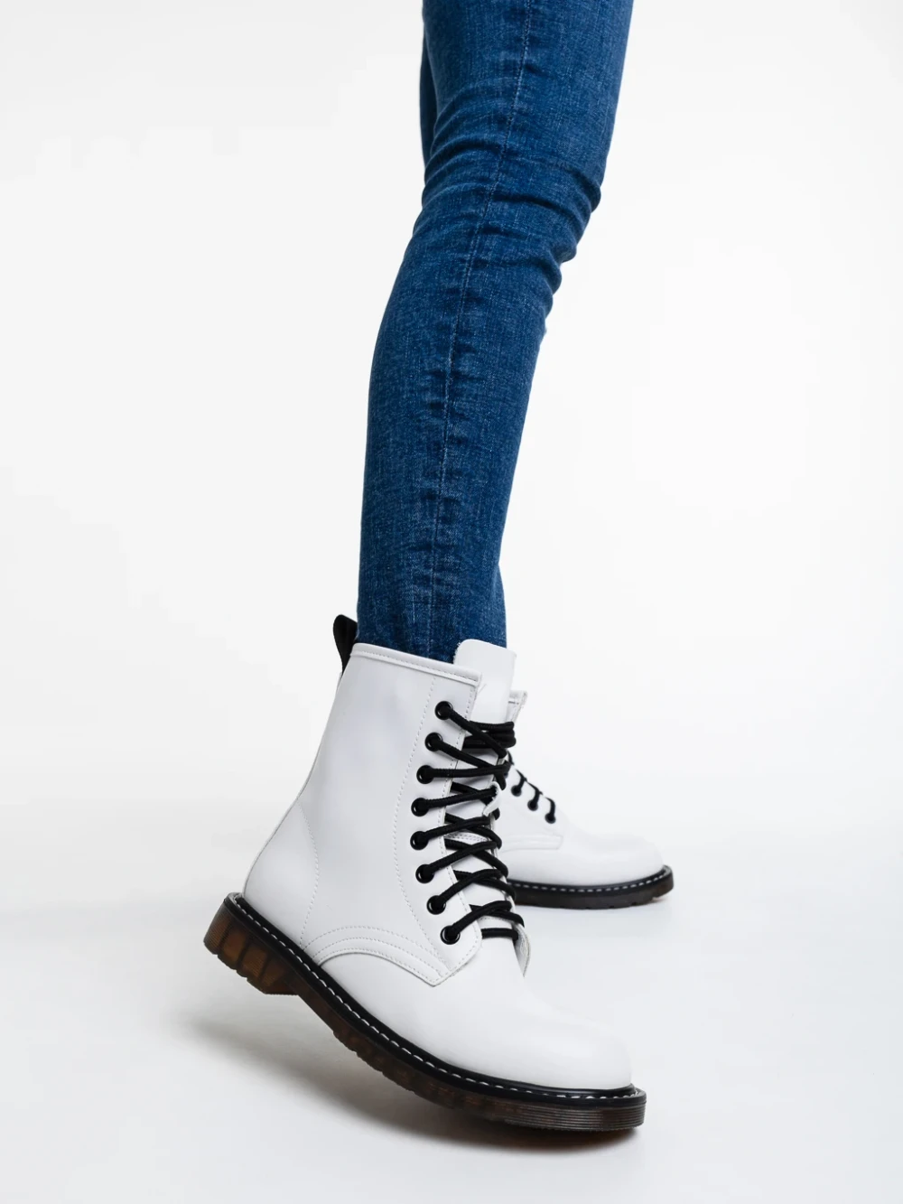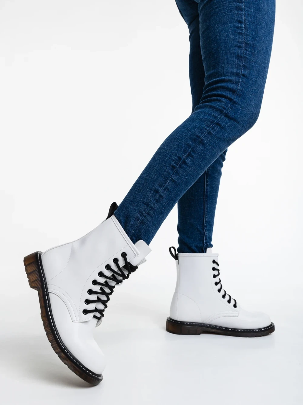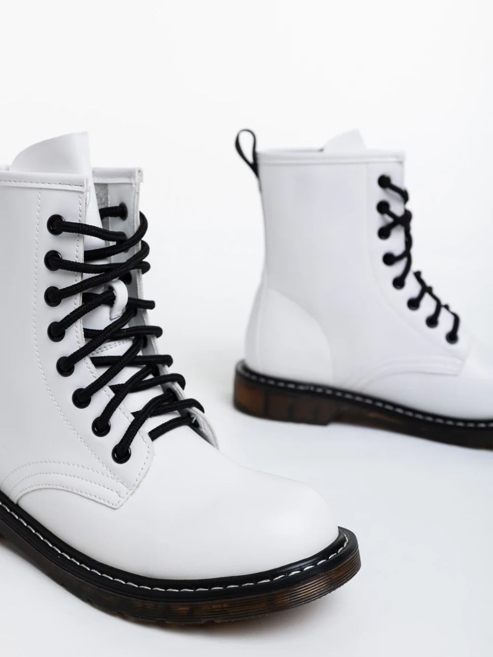 Ghete dama albe din piele ecologica lacuita Tierra Detalii produs