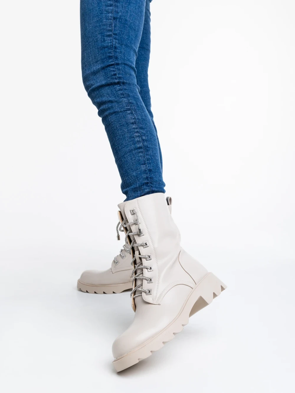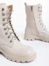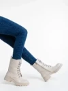 Ghete dama bej din piele ecologica Kaoru