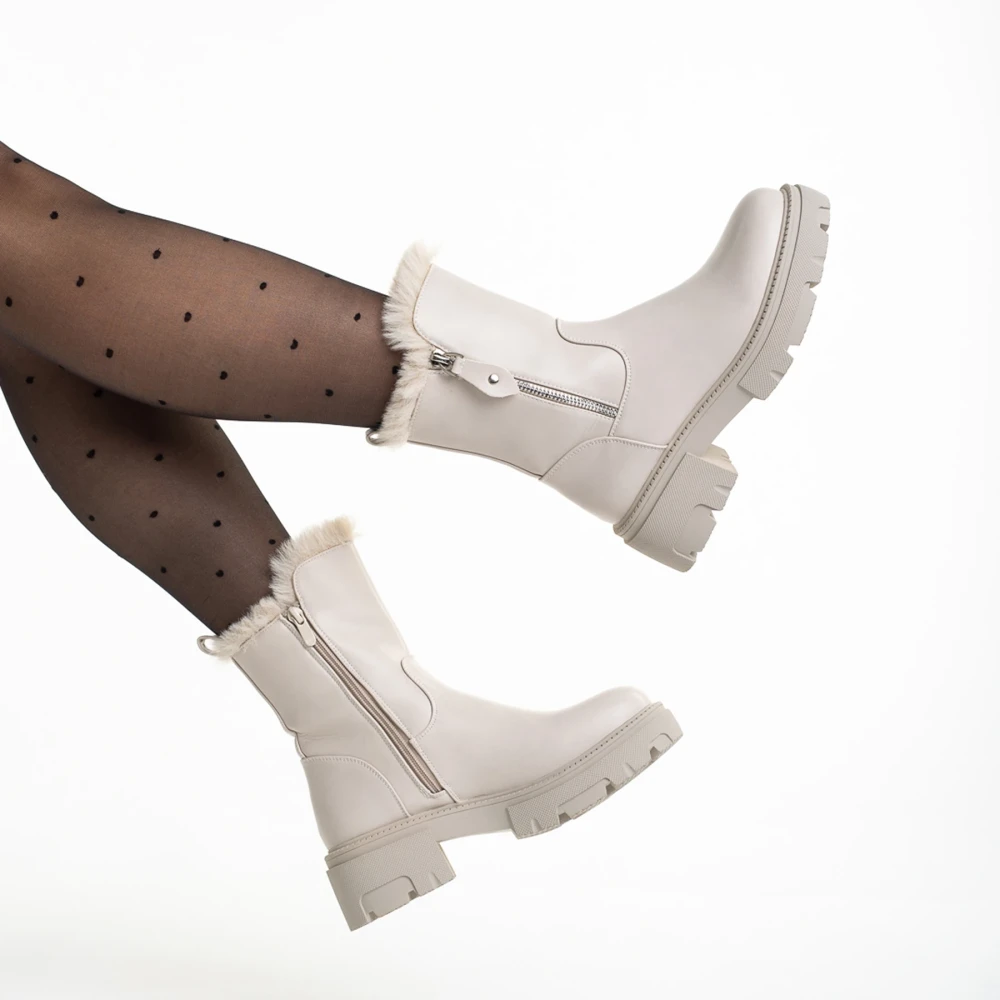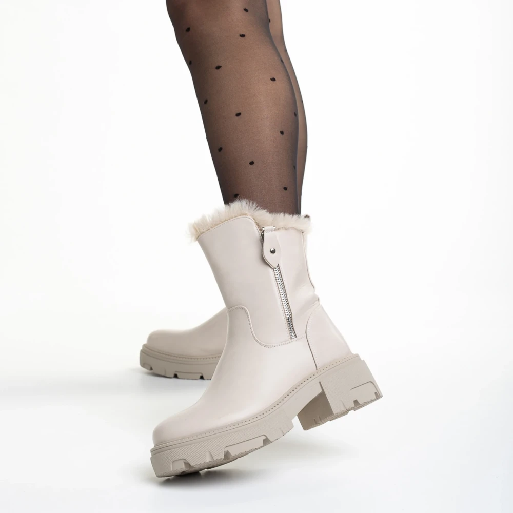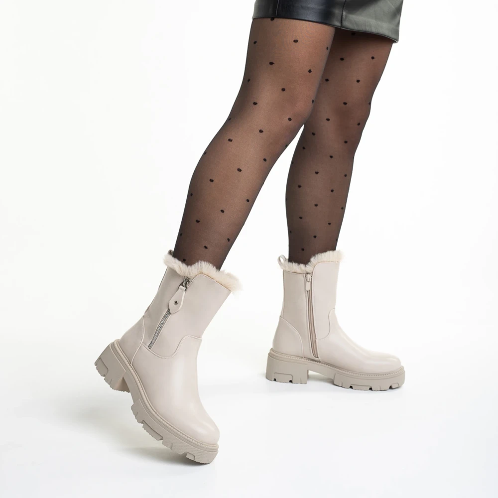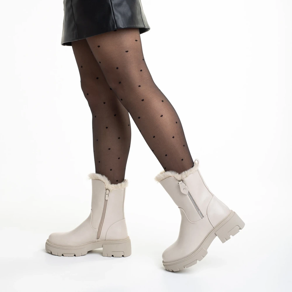 Ghete dama bej din piele ecologica Pallie