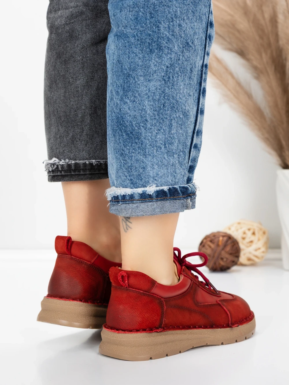 Pantofi Casual Dama din piele naturala 886 Rosu | Franco Gerardo
