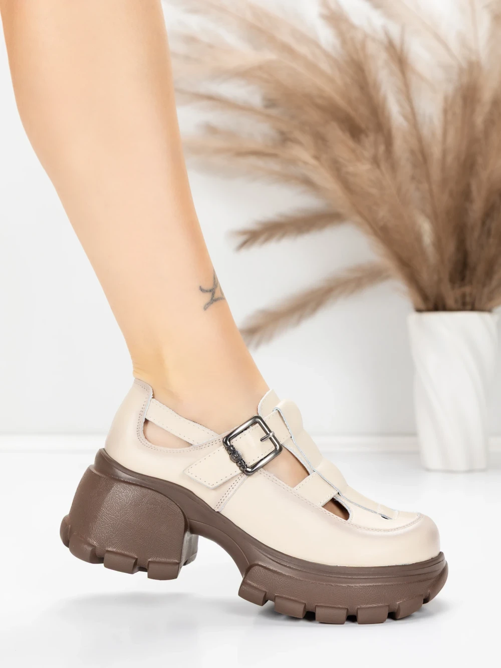 Pantofi Casual Dama din piele naturala KM327 Crem | Formazione