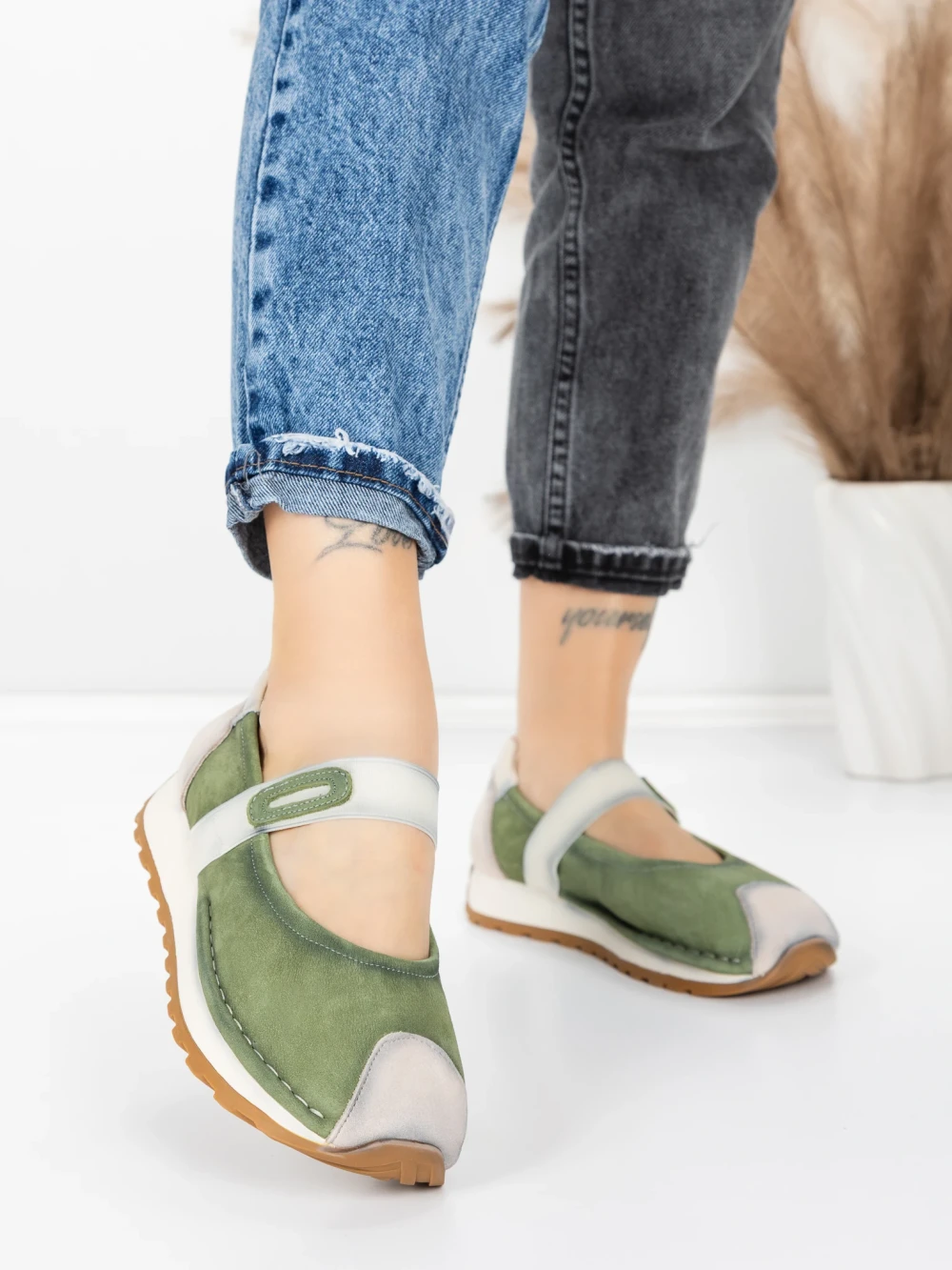 Pantofi Casual Dama din piele naturala KM9205 Verde | Advancer