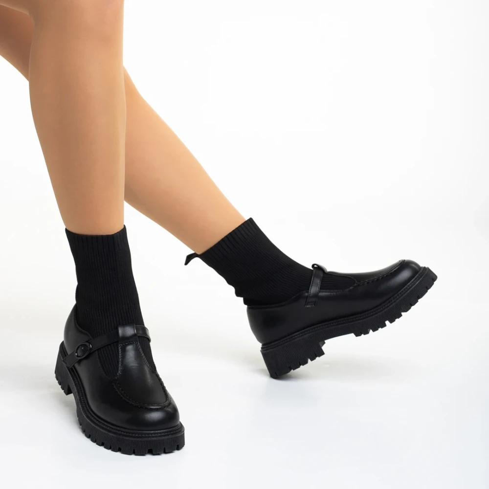 Pantofi casual dama negre din piele ecologica si material textil Dallas Detalii produs