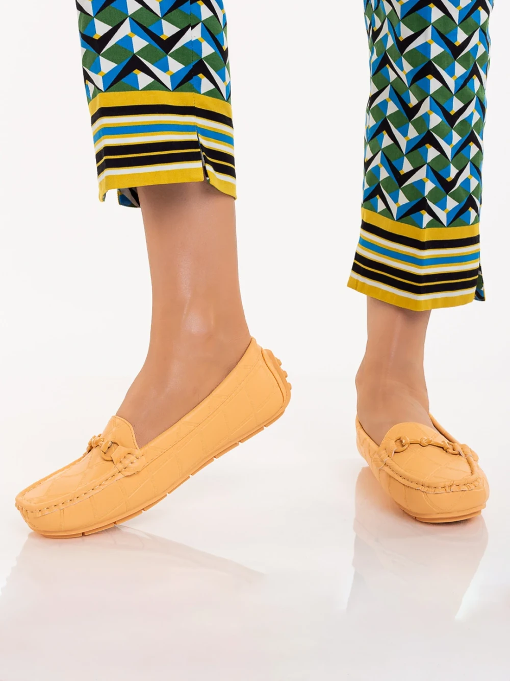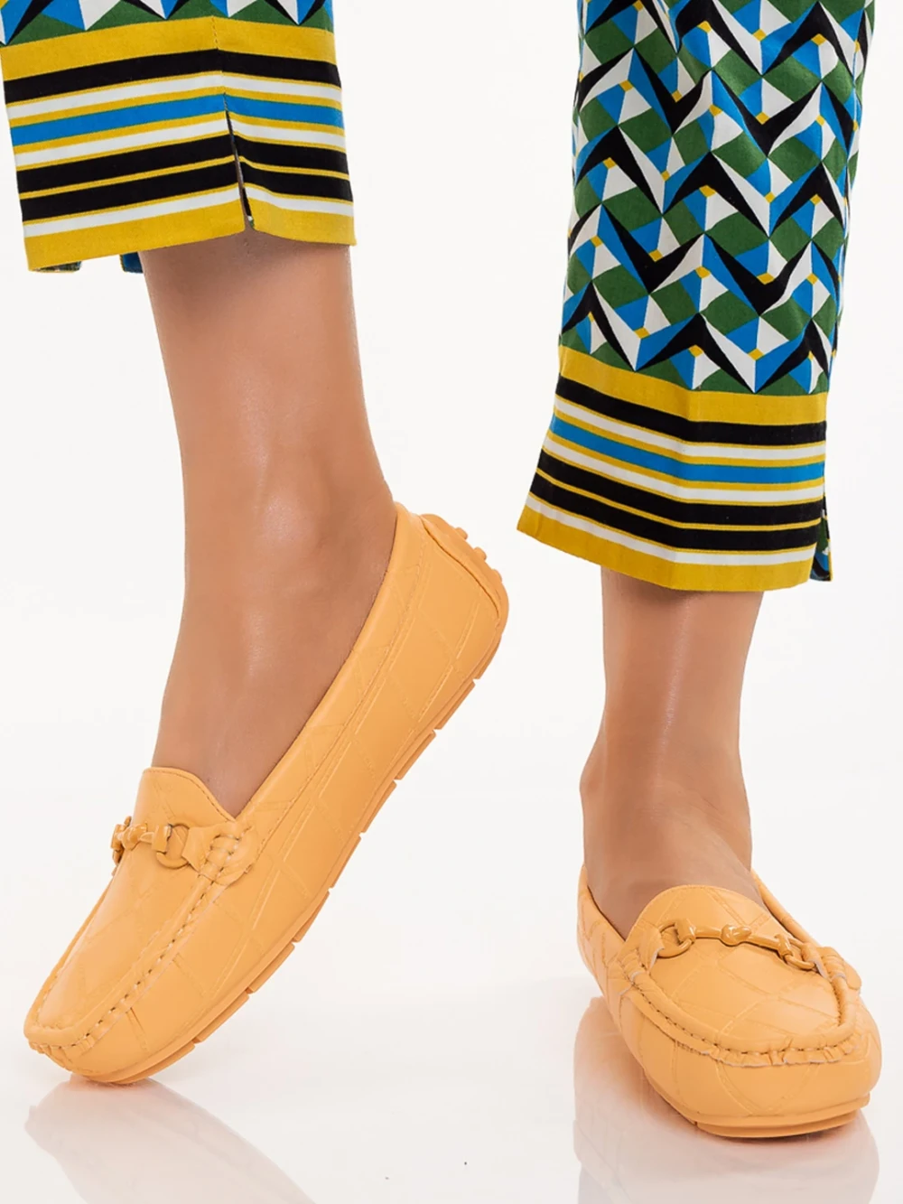 Mocasini dama portocalii din piele ecologica Ariella