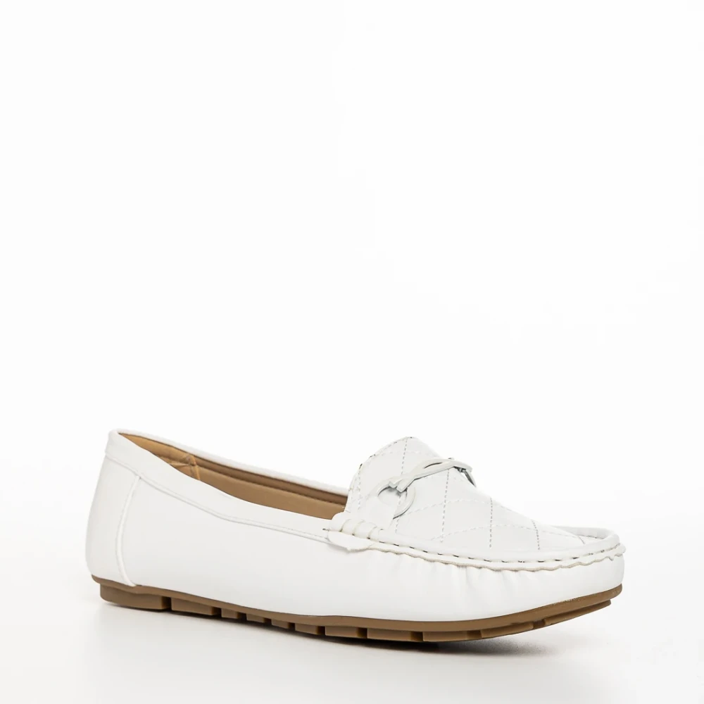 Mocasini dama albi din piele ecologica Stanley