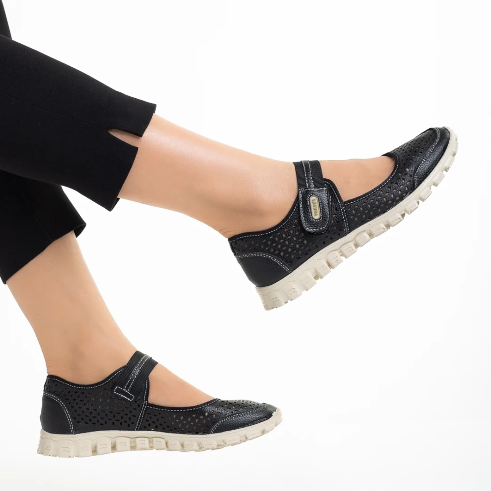 Pantofi casual dama negri din piele ecologica Lakendra