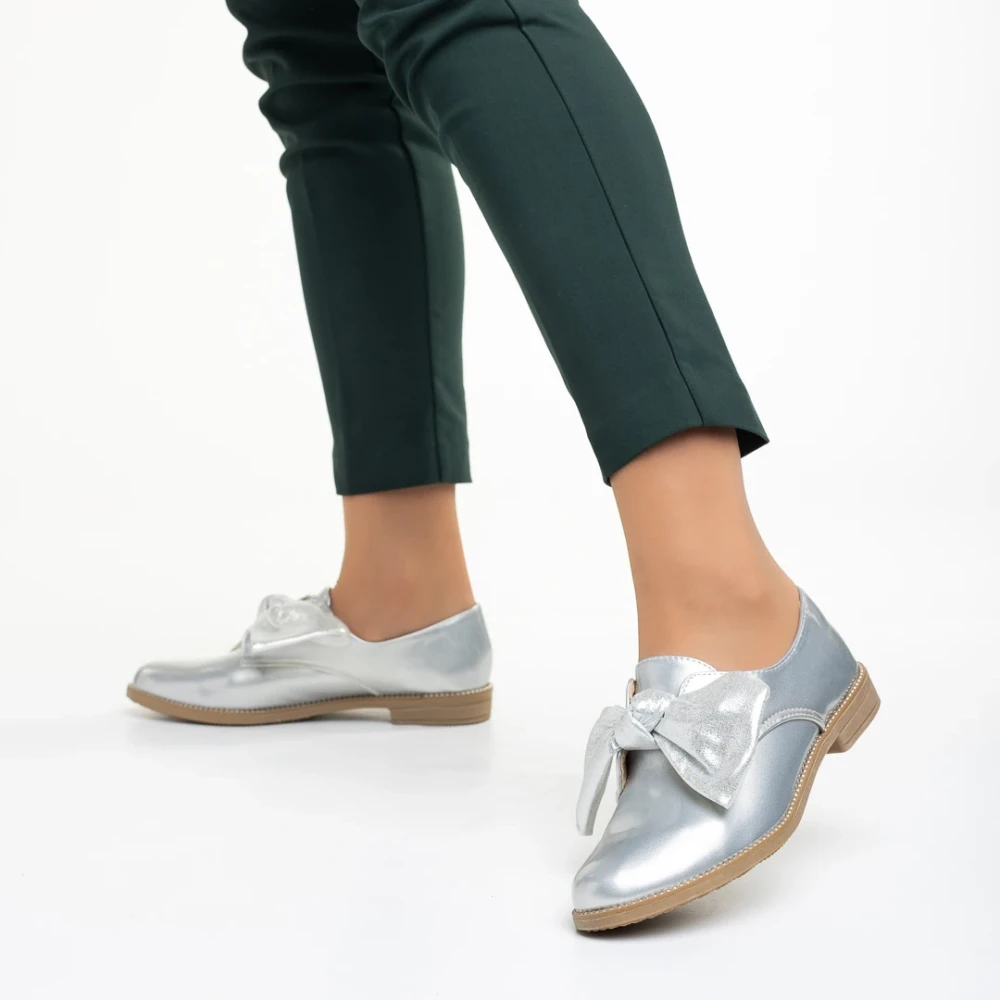 Pantofi dama argintii din piele ecologica lacuita Mitra Detalii produs