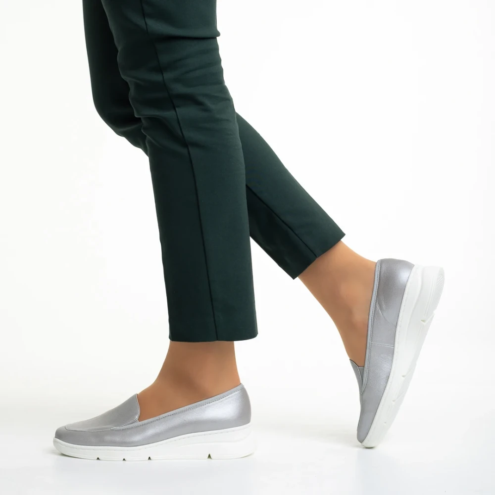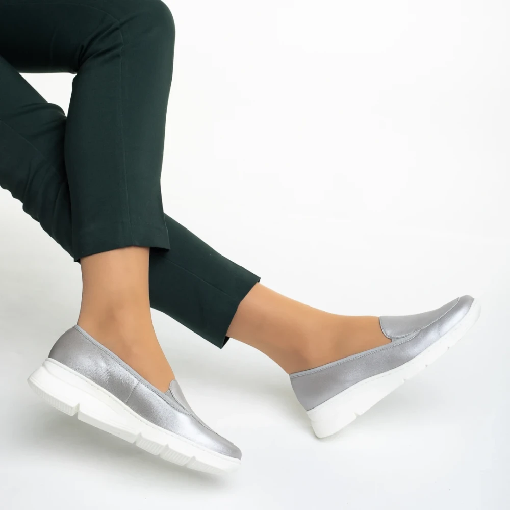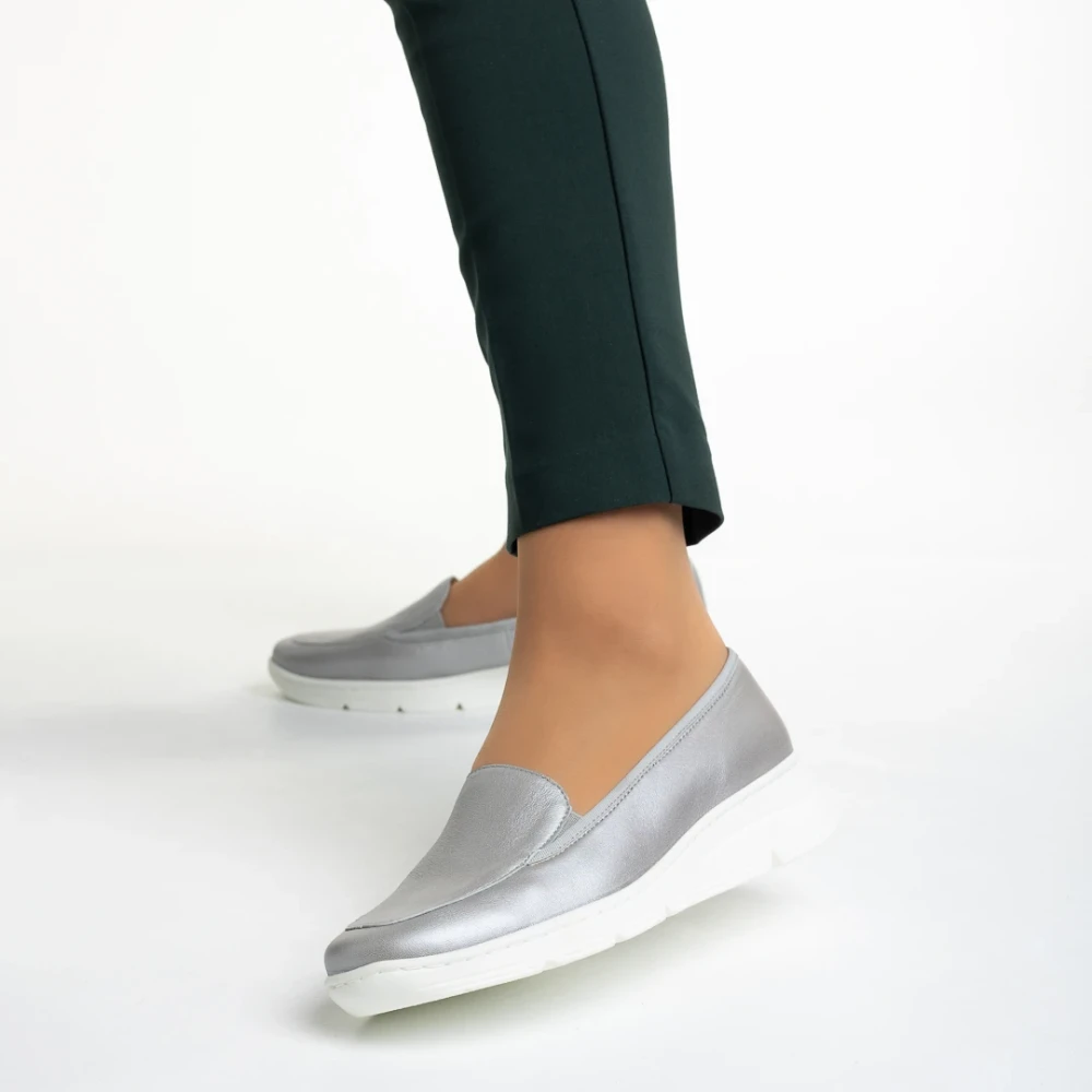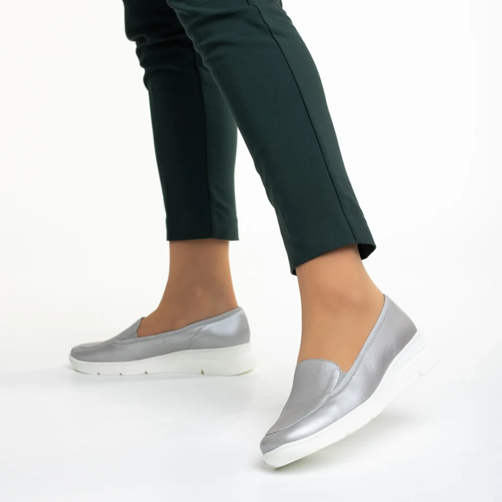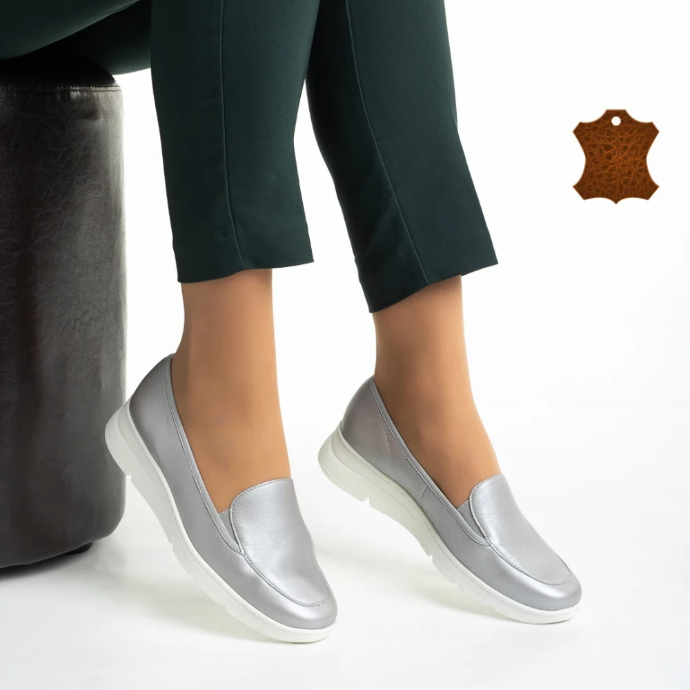 Pantofi dama argintii din piele naturala Tajana