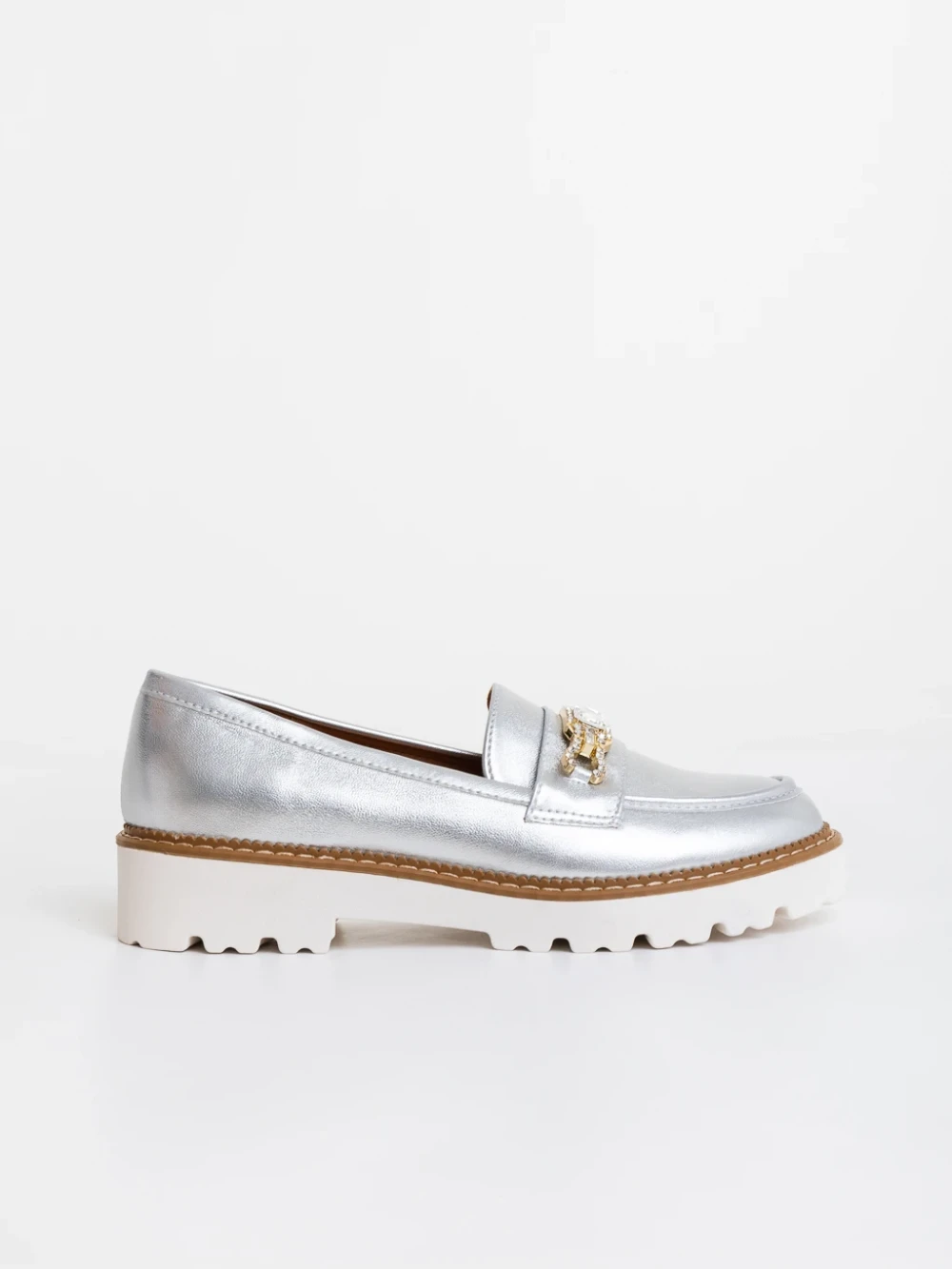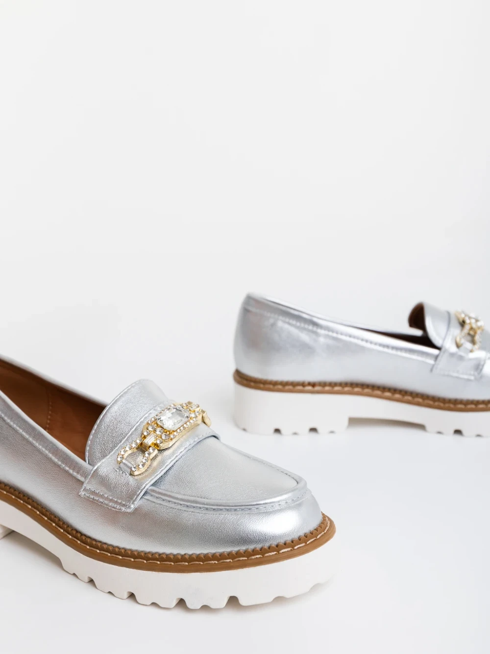 Mocasini dama argintii din piele ecologica Jenima Detalii produs