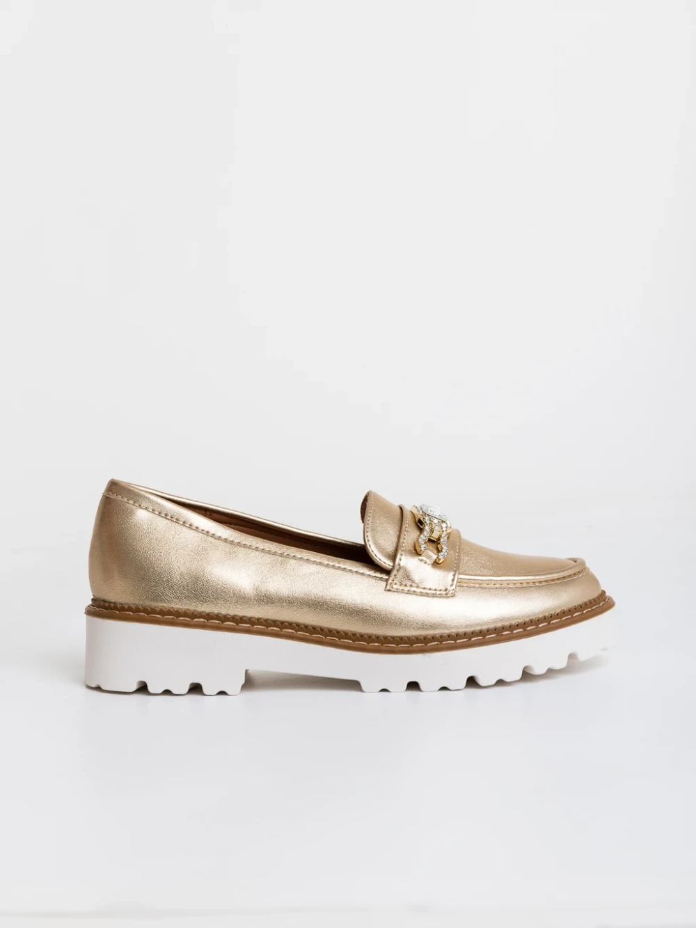 Mocasini dama aurii din piele ecologica Jenima Detalii produs