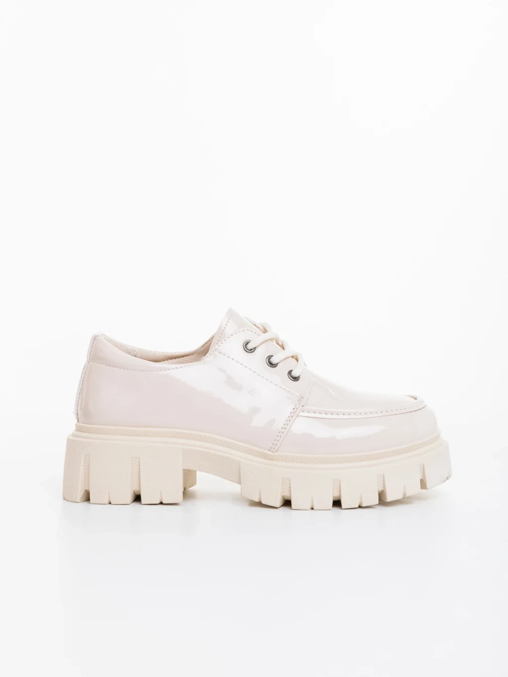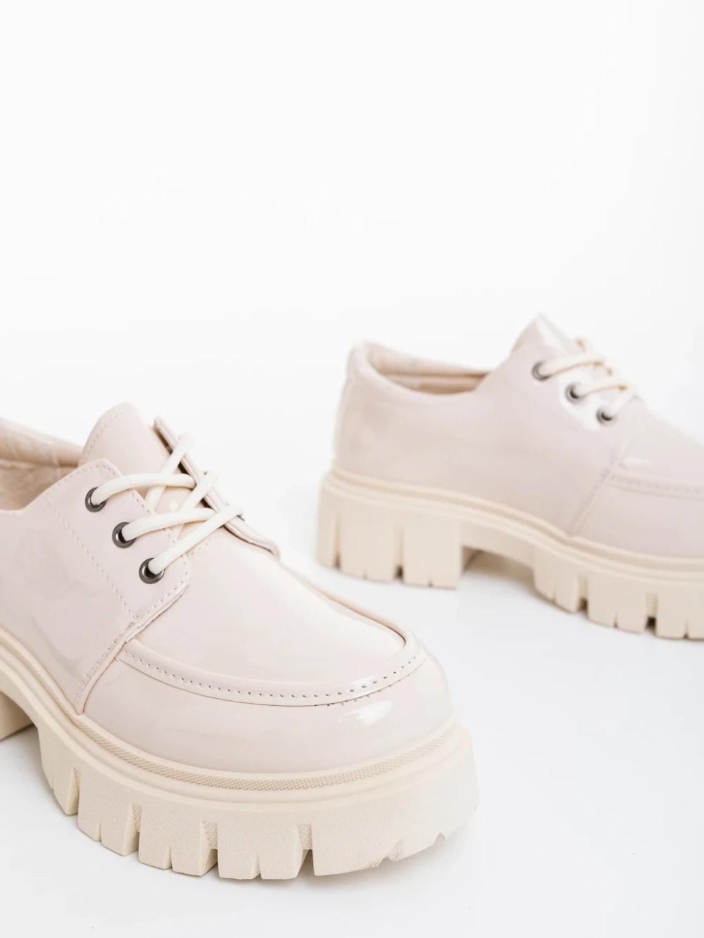 Mocasini dama bej din piele ecologica lacuita Honami Detalii produs
