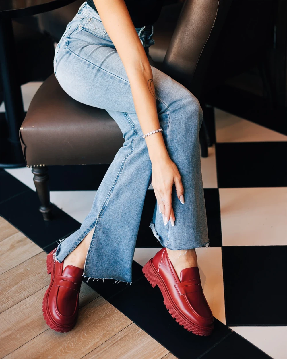 Mocasini dama grena din piele ecologica Sumira Detalii produs