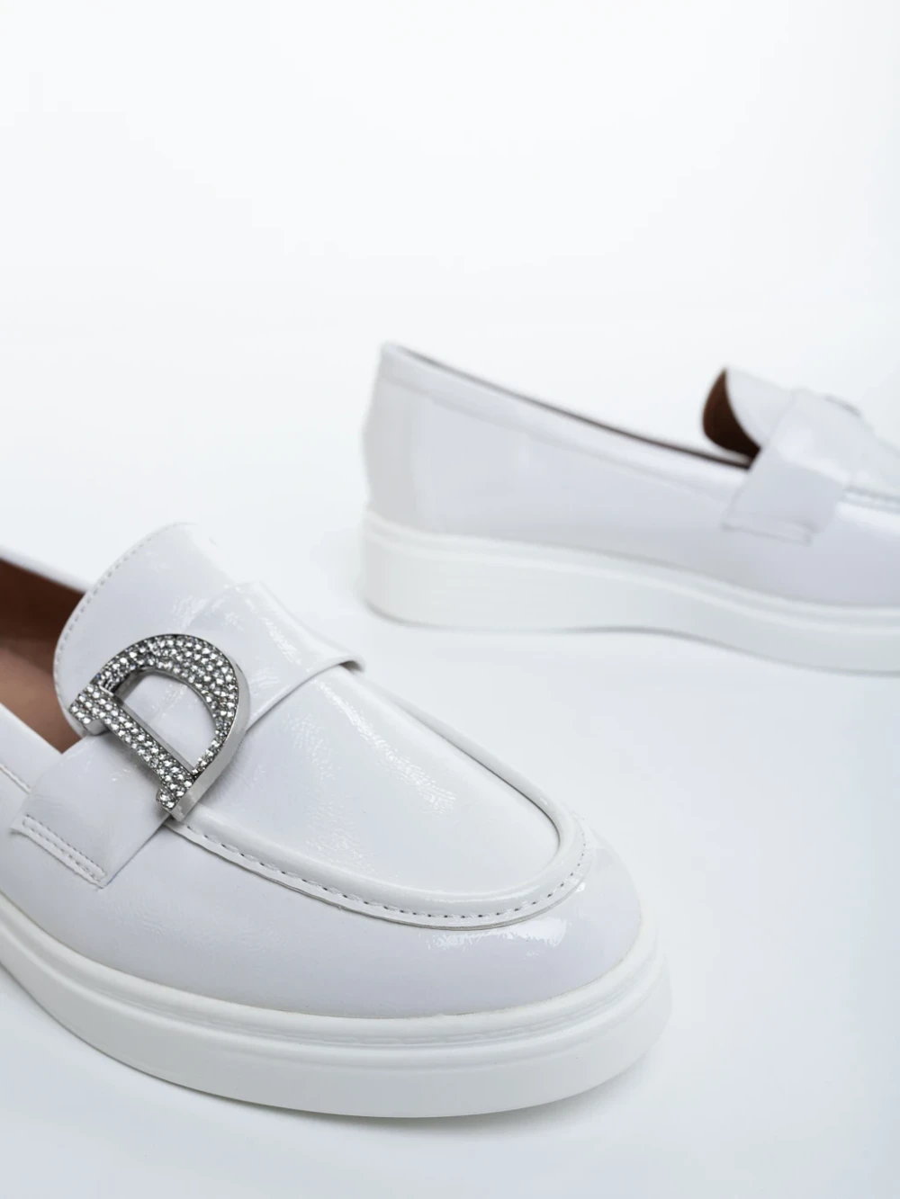 Mocasini dama albi din piele ecologica lacuita Desora Detalii produs