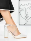 Pantofi dama argintii din material textil cu toc Ziva