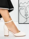 Pantofi dama bej din piele ecologica lacuita cu toc Ilonka