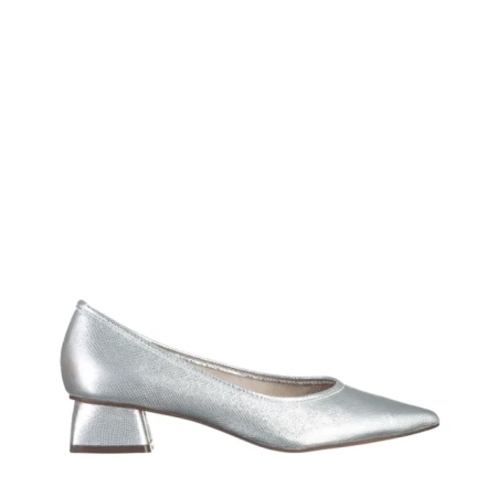 Pantofi dama argintii din piele ecologica cu toc Veda