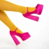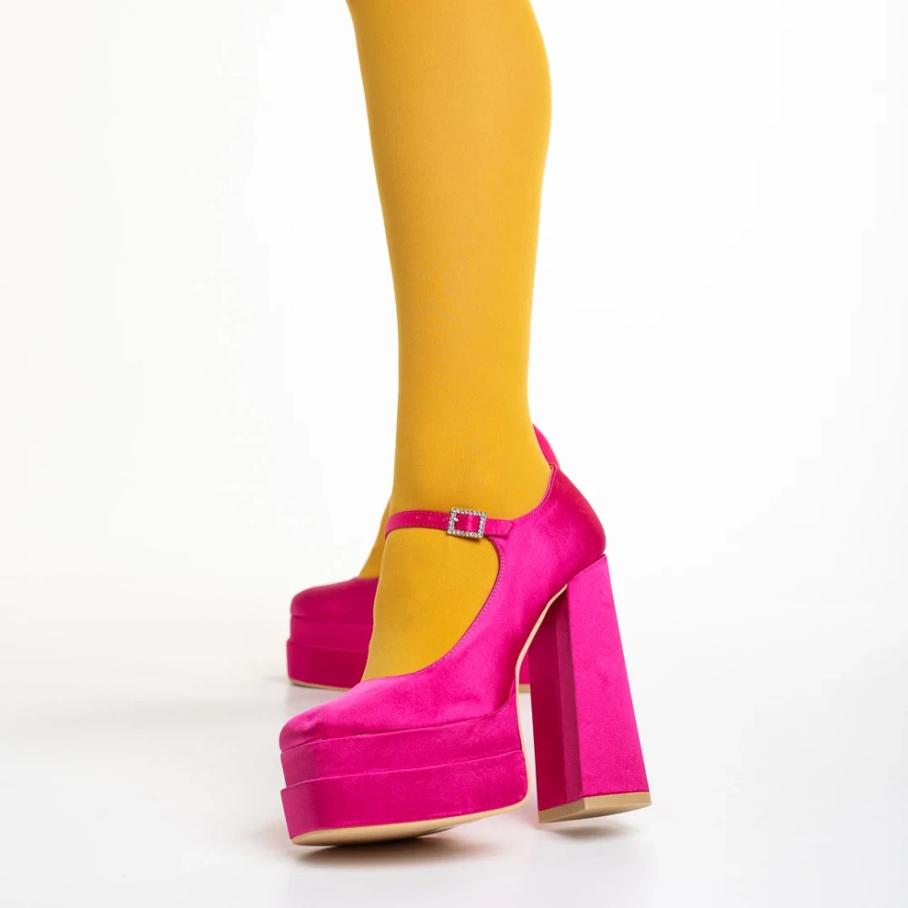 Pantofi dama fucsia din material textil cu toc Caira Detalii produs