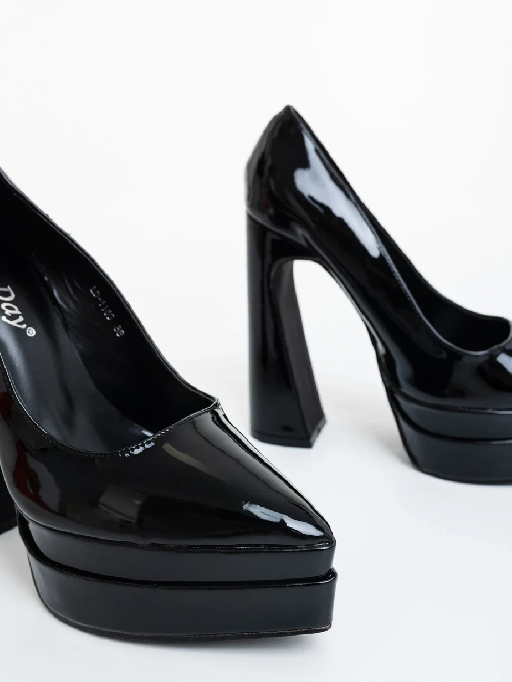 Pantofi dama cu toc negri din piele ecologica lacuita Dazani Detalii produs