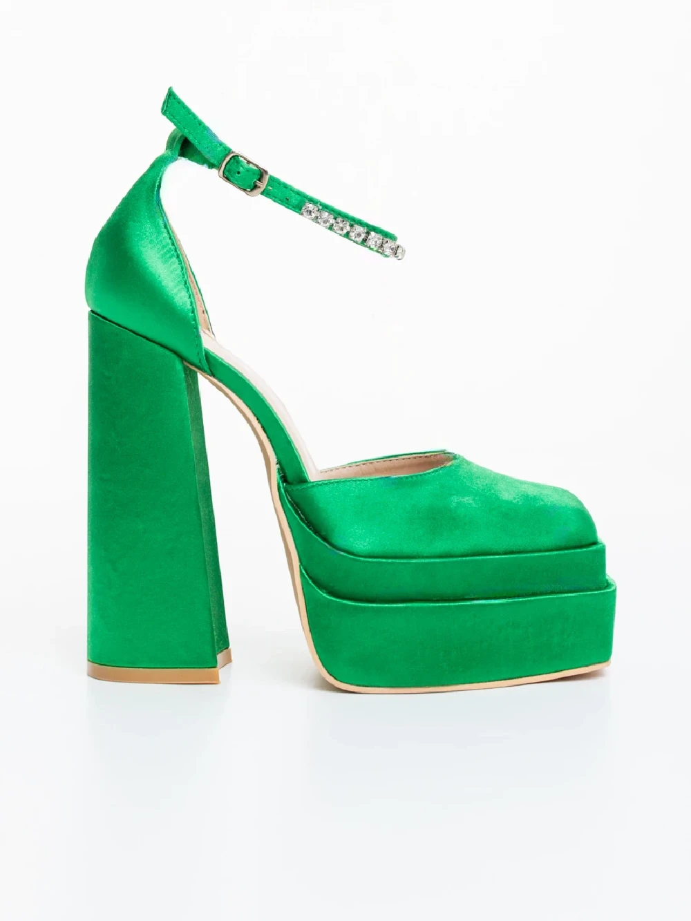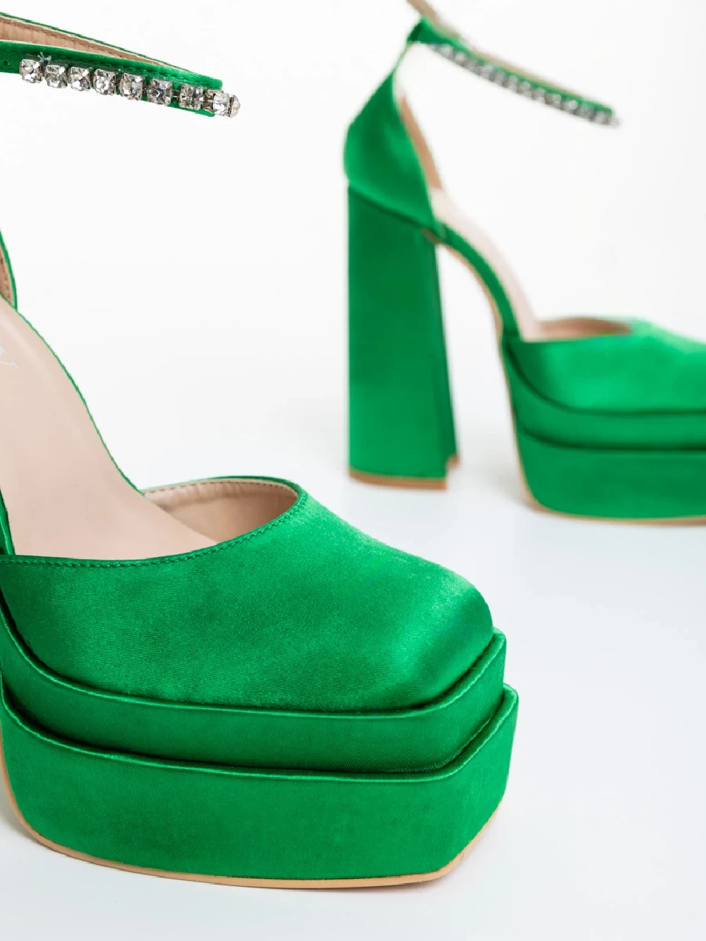 Pantofi dama cu toc verzi din material textil Arcania Detalii produs