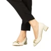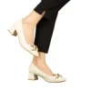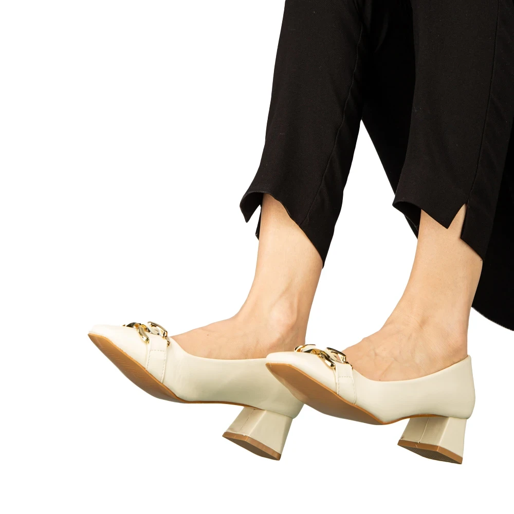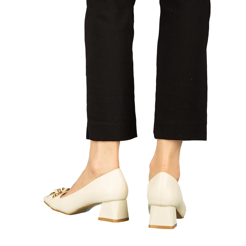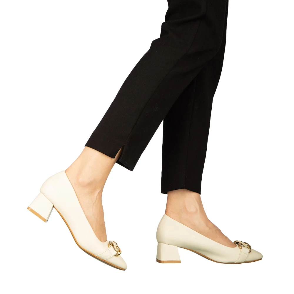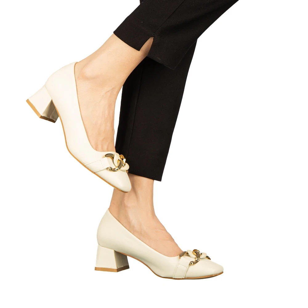 Pantofi dama cu toc bej din piele ecologica Sansiro