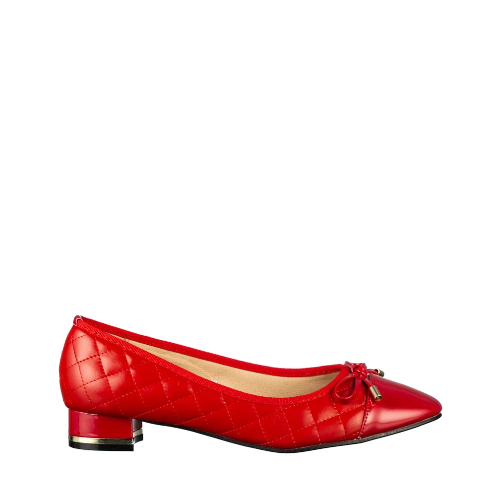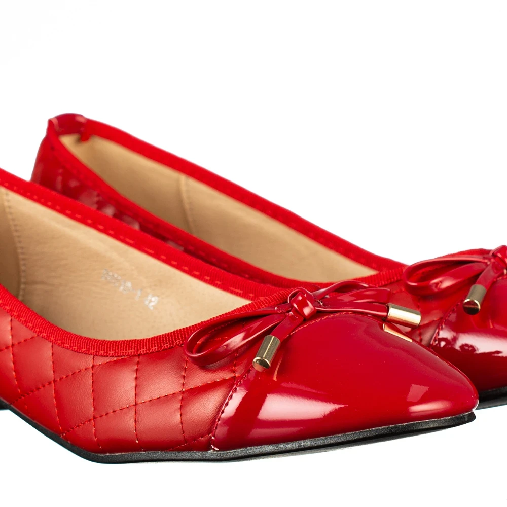 Pantofi dama cu toc rosii din material textil Brilia