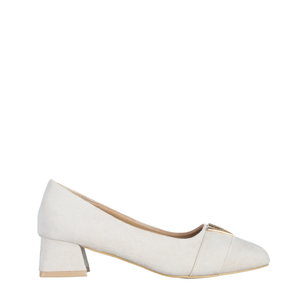 Pantofi dama bej deschis din material textil cu toc Briella Detalii produs