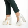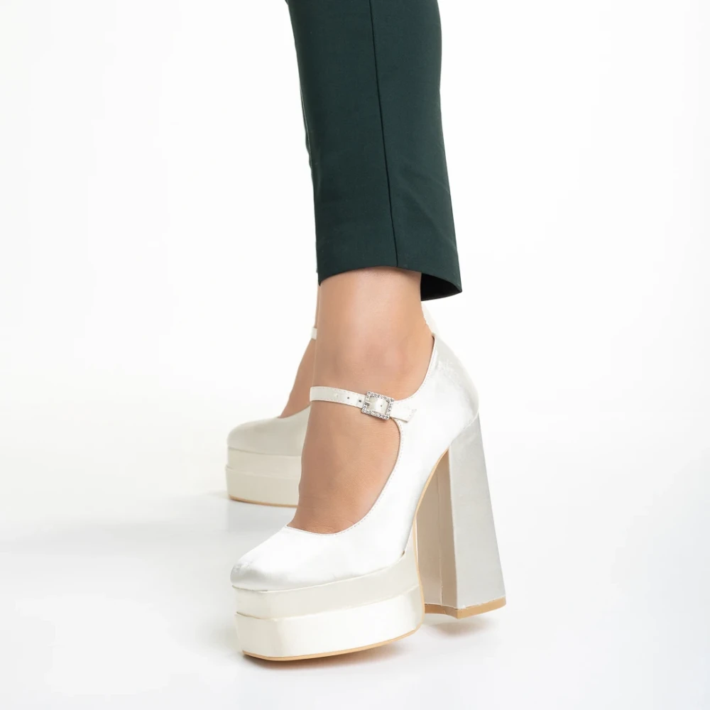 Pantofi dama cream din material textil cu toc Caira Detalii produs