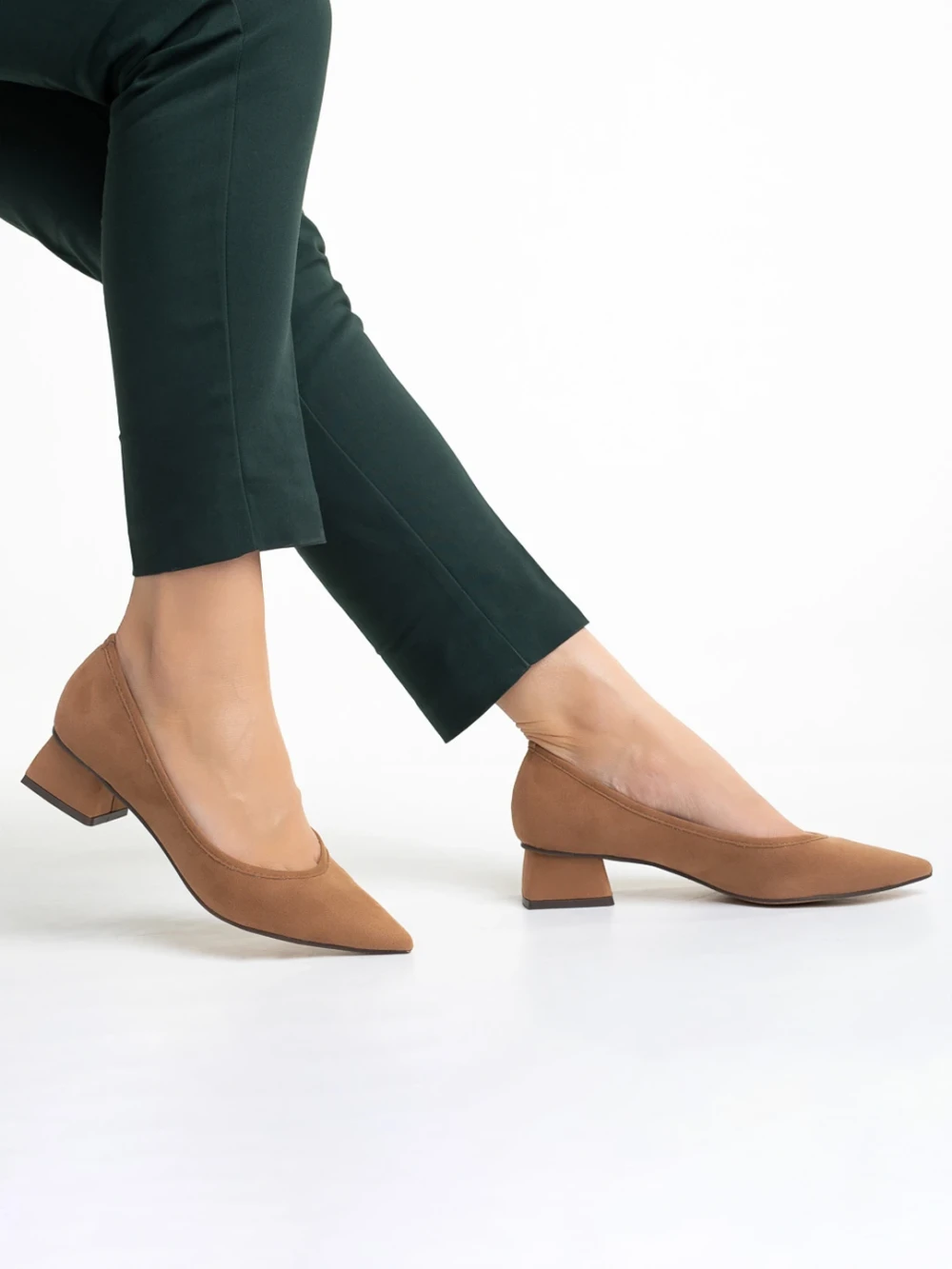 Pantofi dama bej din material textil cu toc Ziva Detalii produs