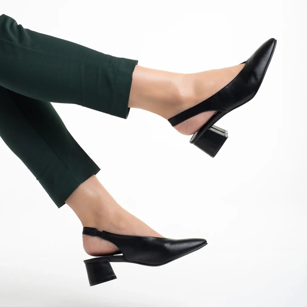 Pantofi dama negri din piele ecologica cu toc Zelda Detalii produs