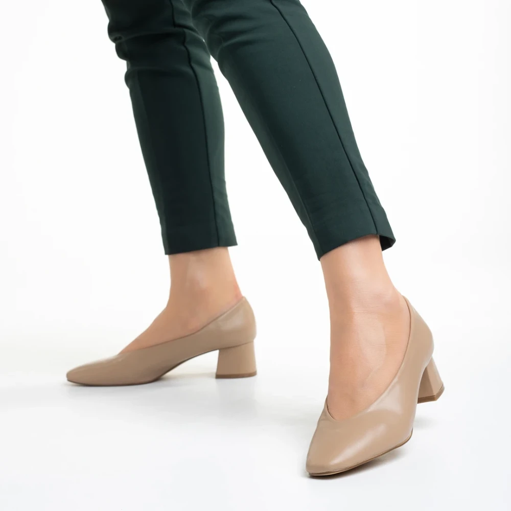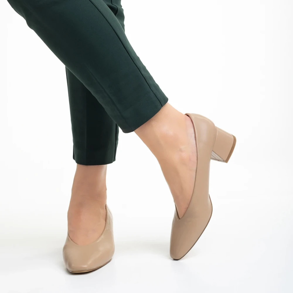 Pantofi dama bej din piele ecologica cu toc Veda Detalii produs