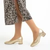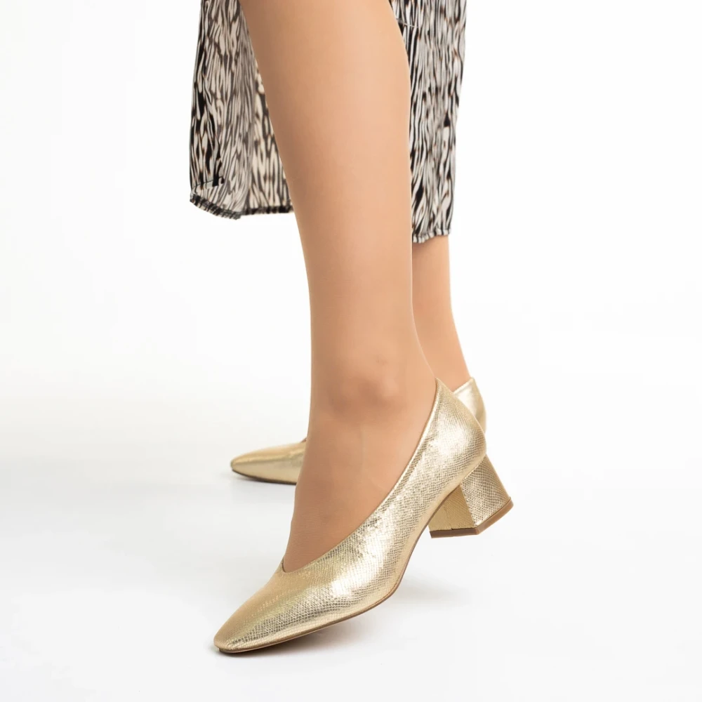 Pantofi dama aurii din piele ecologica cu toc Veda Detalii produs