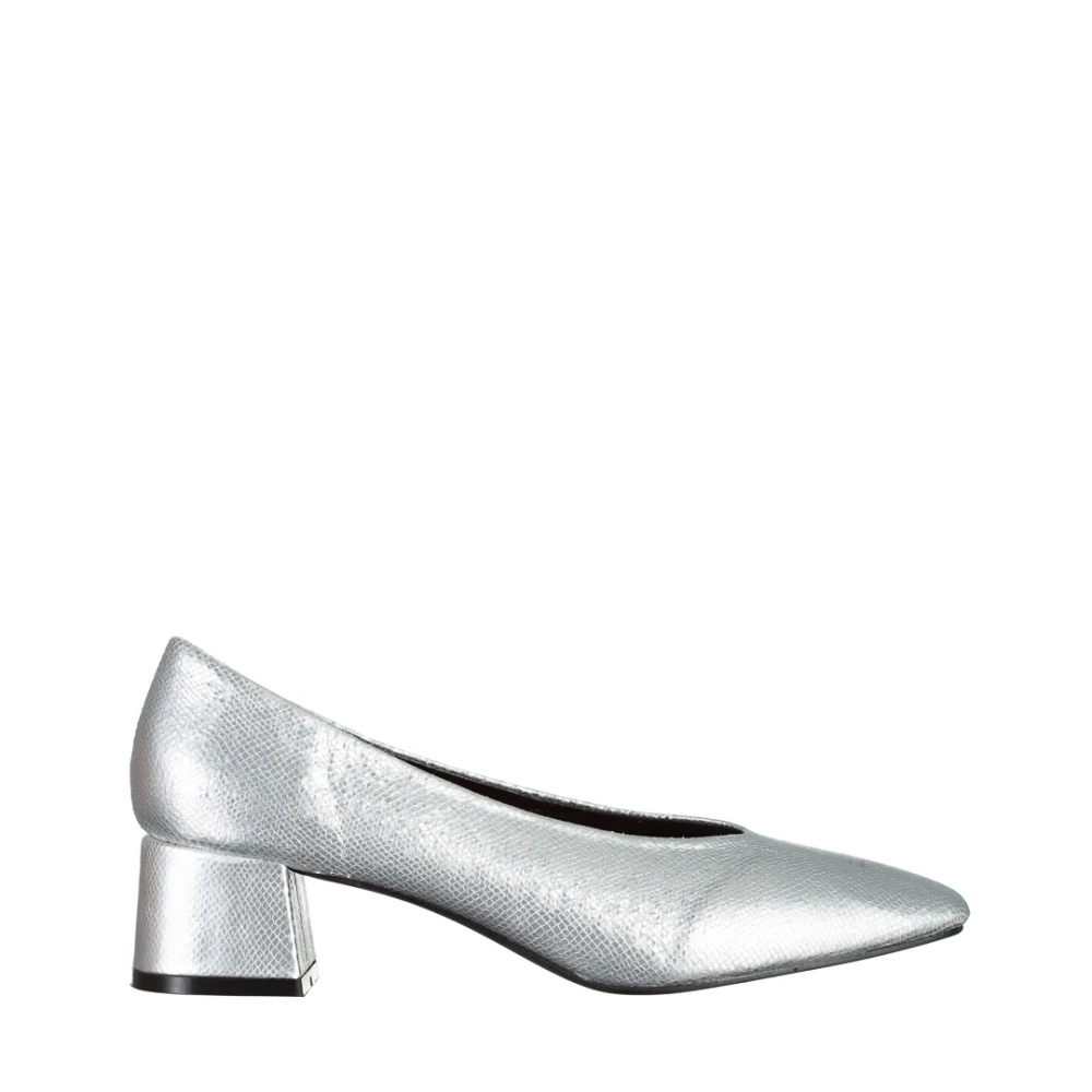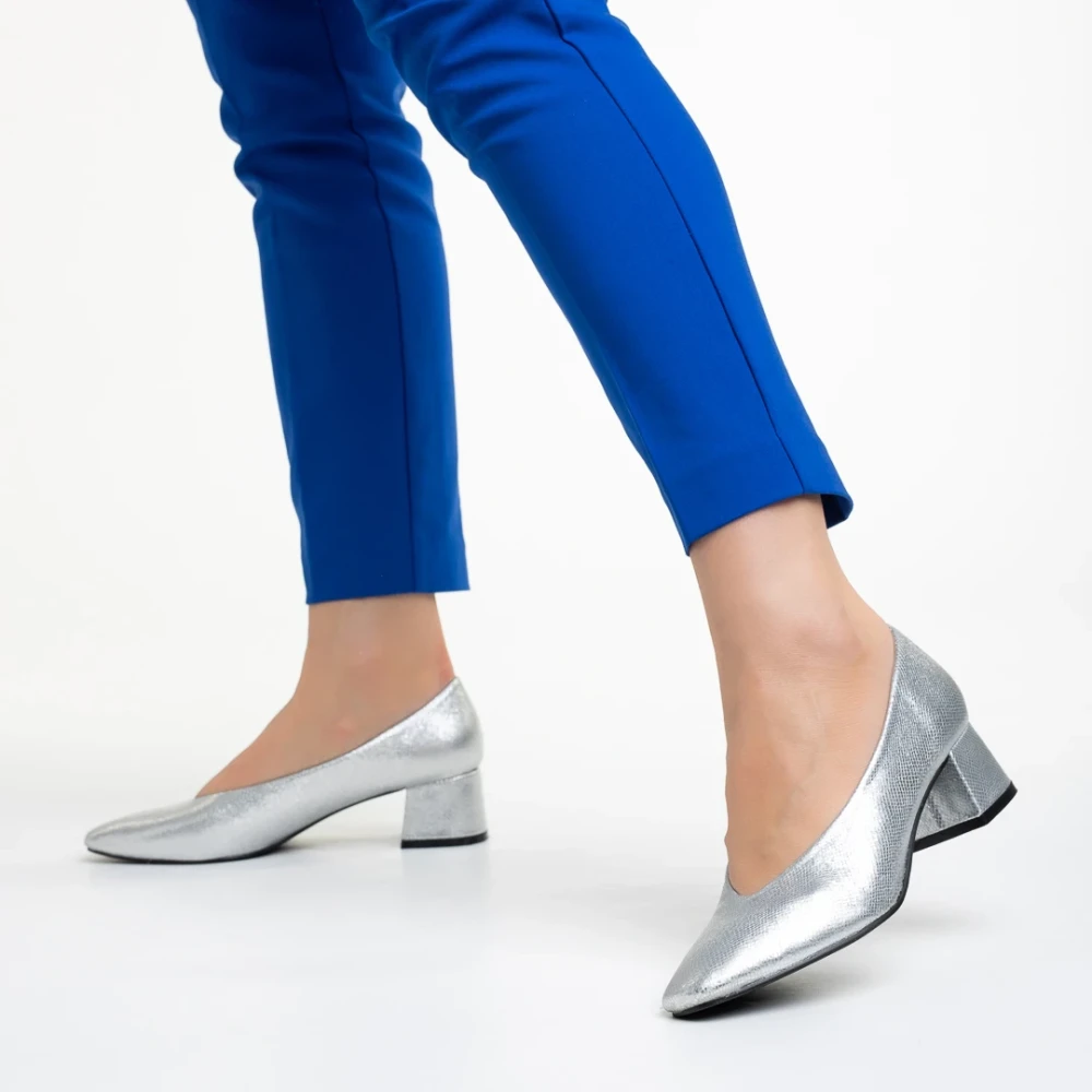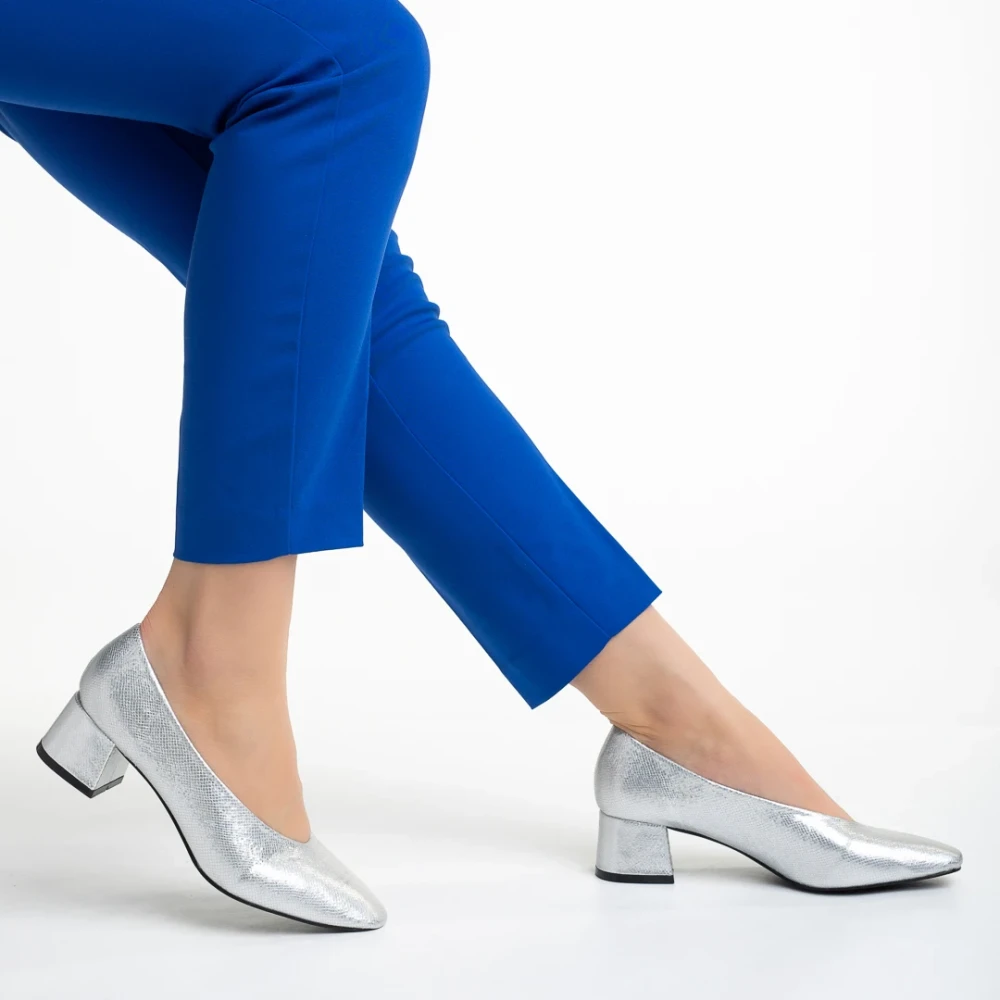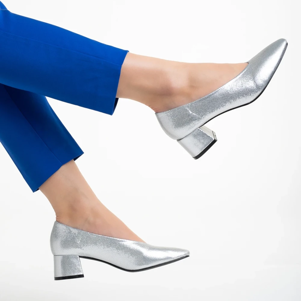 Pantofi dama argintii din piele ecologica cu toc Veda Detalii produs