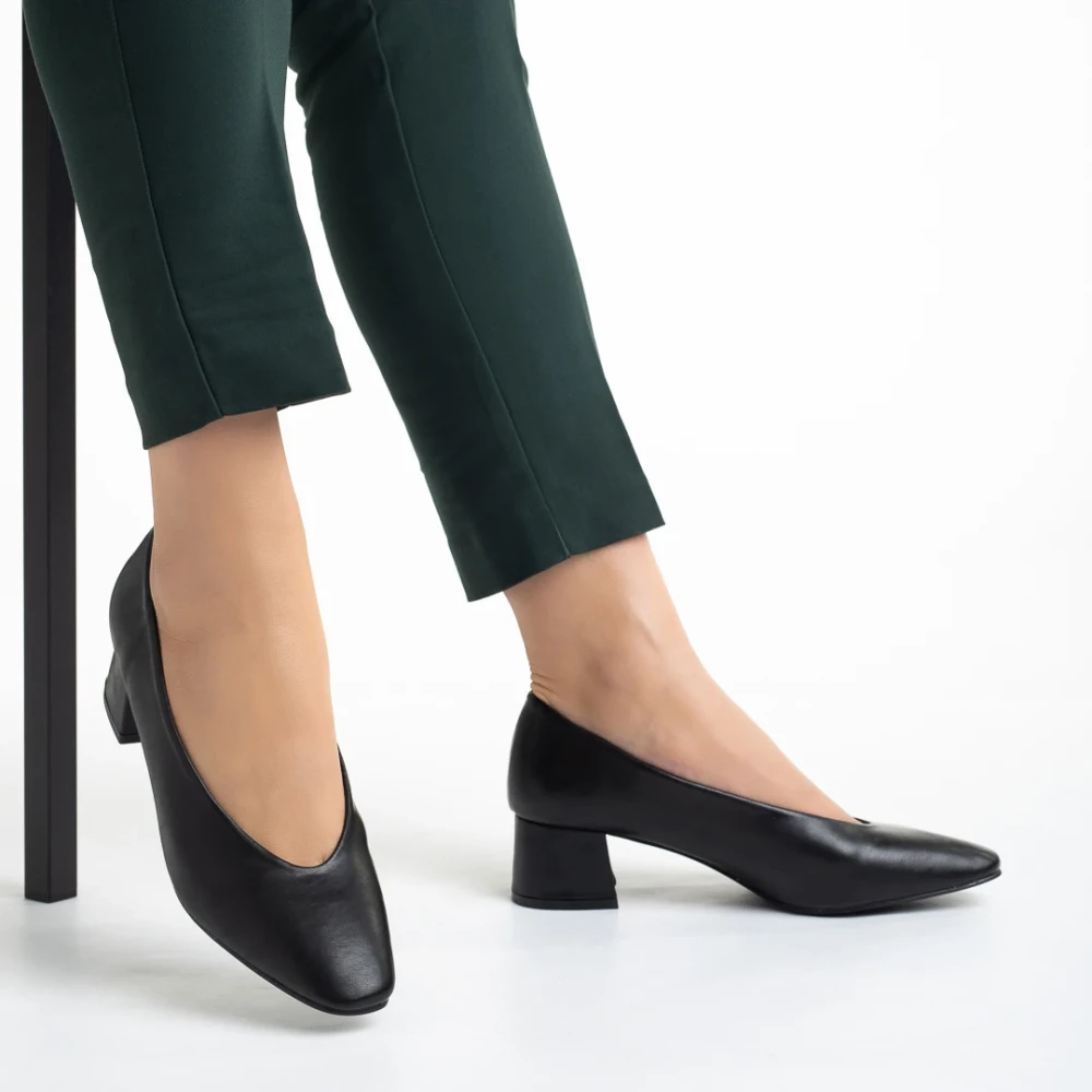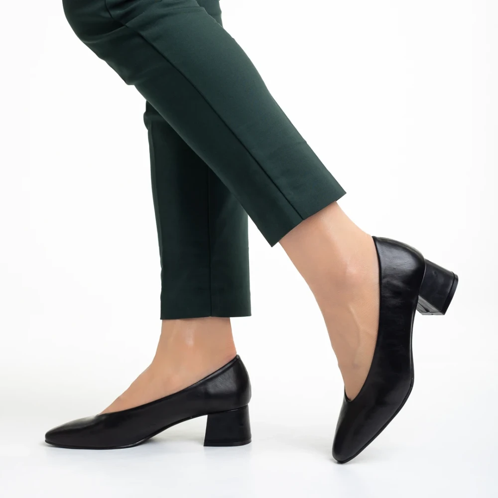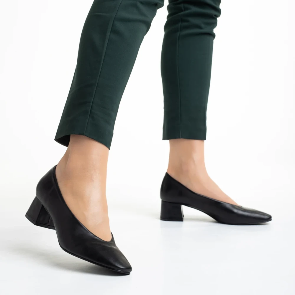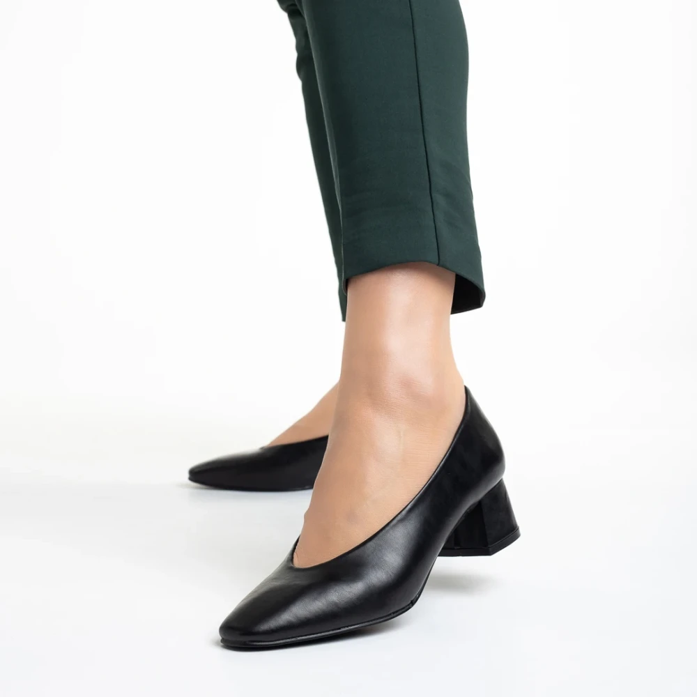 Pantofi dama negri din piele ecologica cu toc Veda Detalii produs