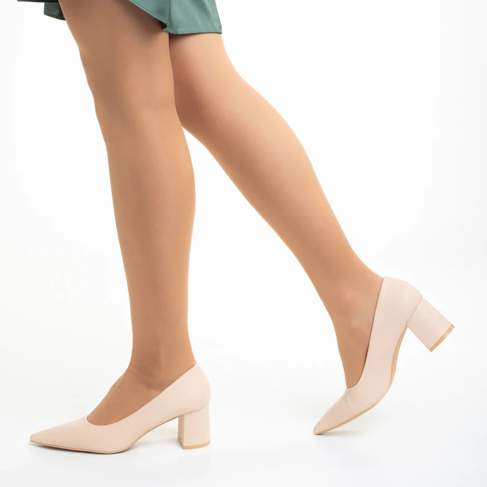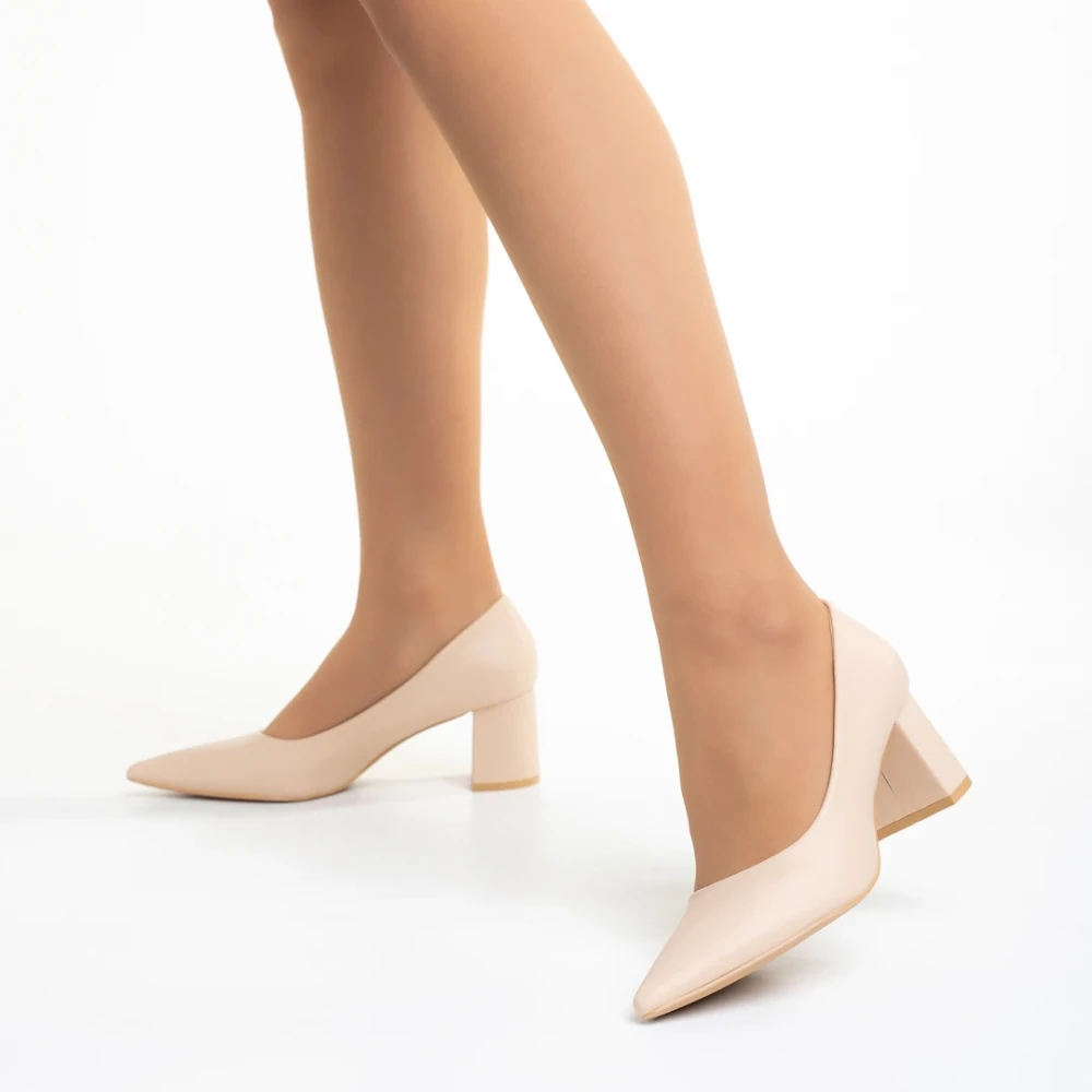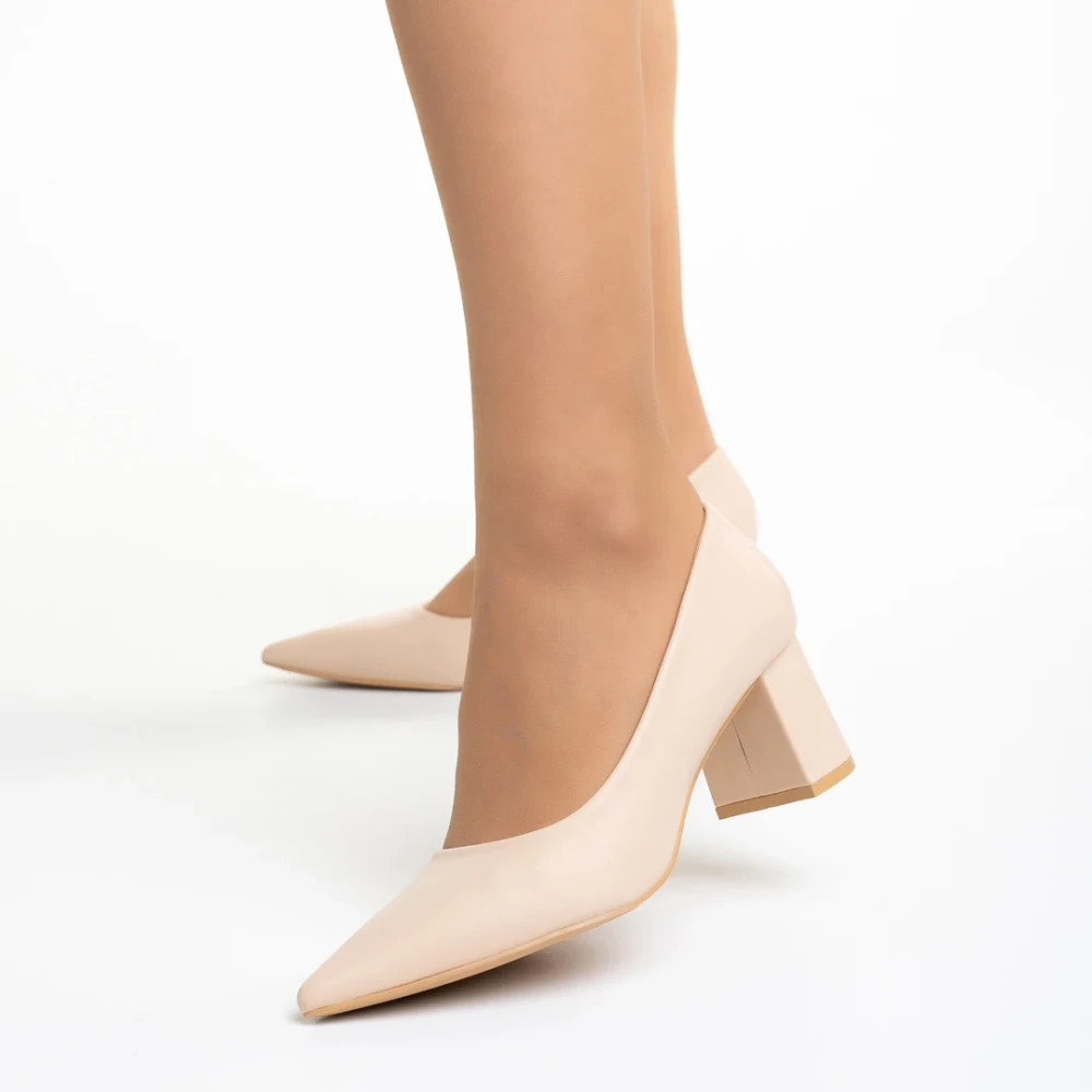 Pantofi dama bej din piele ecologica cu toc Amarilis Detalii produs