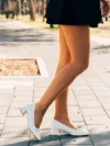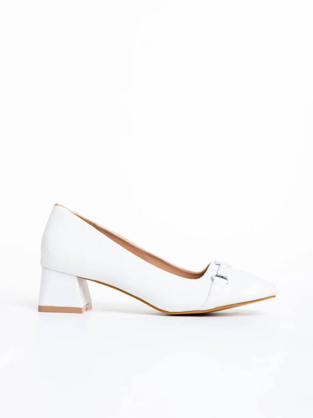 Pantofi dama albi cu toc din material textil Norina Detalii produs