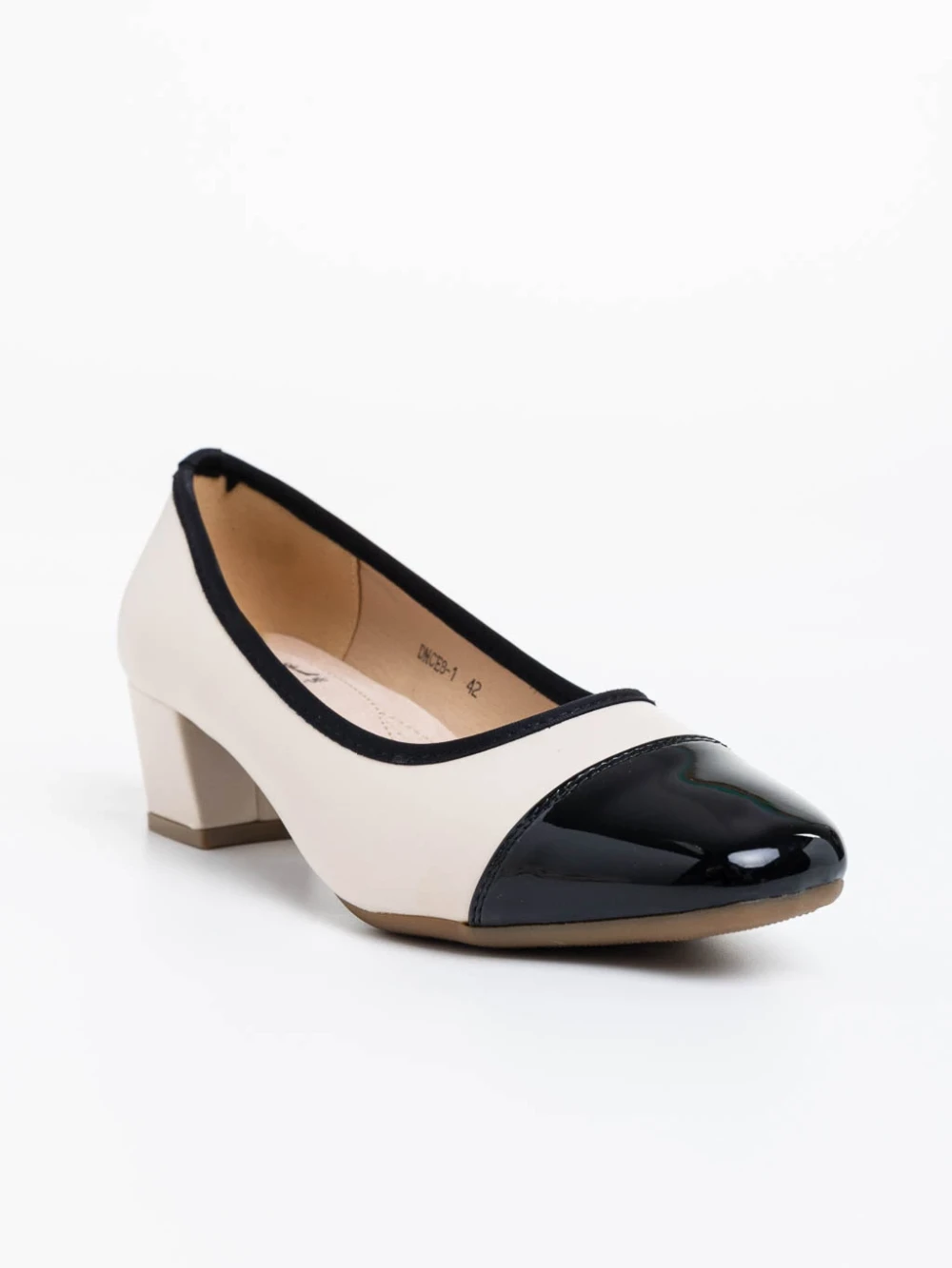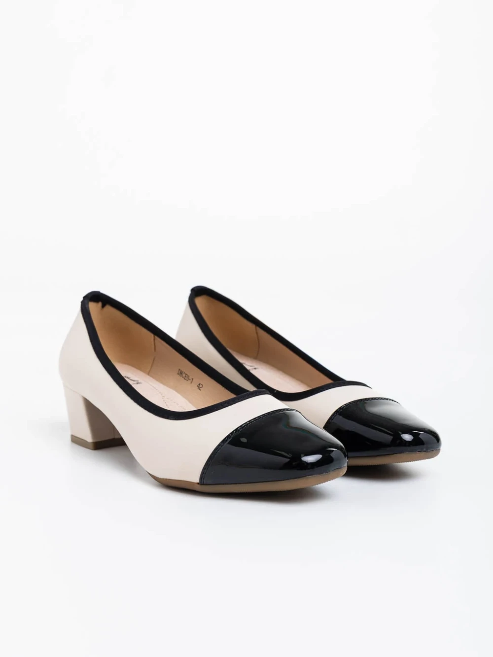 Pantofi dama bej cu toc din piele ecologica Reine Detalii produs