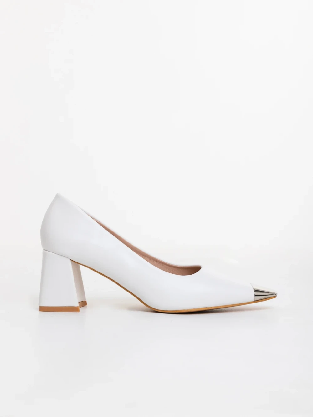 Pantofi dama cu toc albi din piele ecologica Carimar Detalii produs