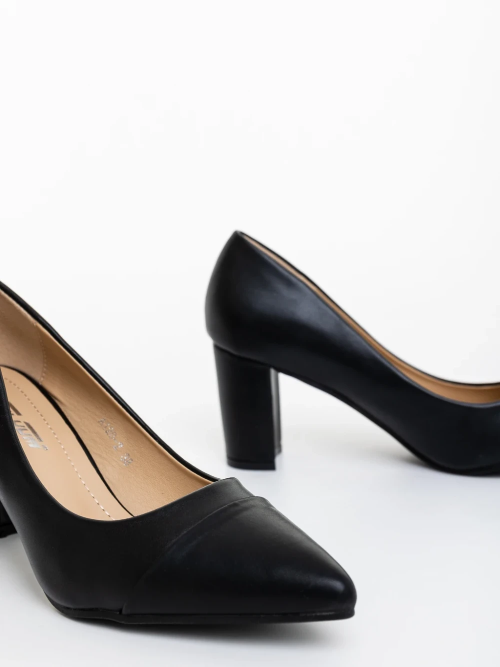 Pantofi dama cu toc negri din piele ecologica Pictoria