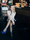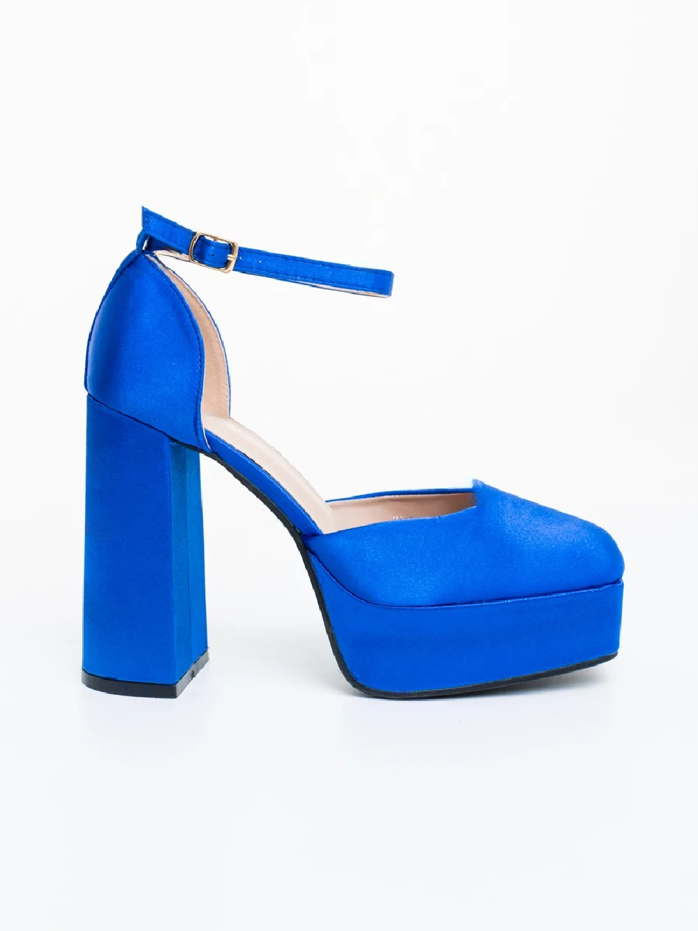 Pantofi dama cu toc albastri din material textil Brilia Detalii produs