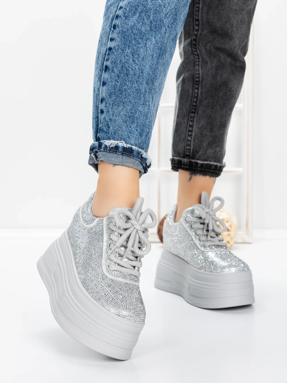 Pantofi Sport Dama cu Platforma 3591-6 Argintiu | Mei