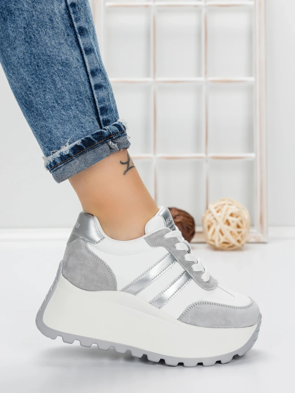 Pantofi Sport Dama cu Platforma 3596 Argintiu | Mei