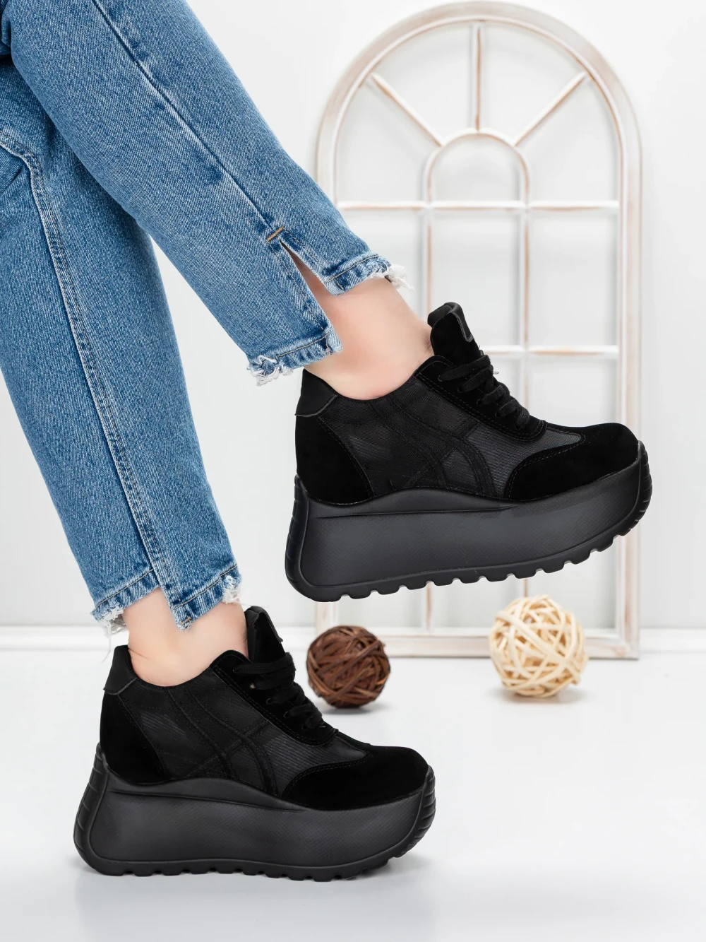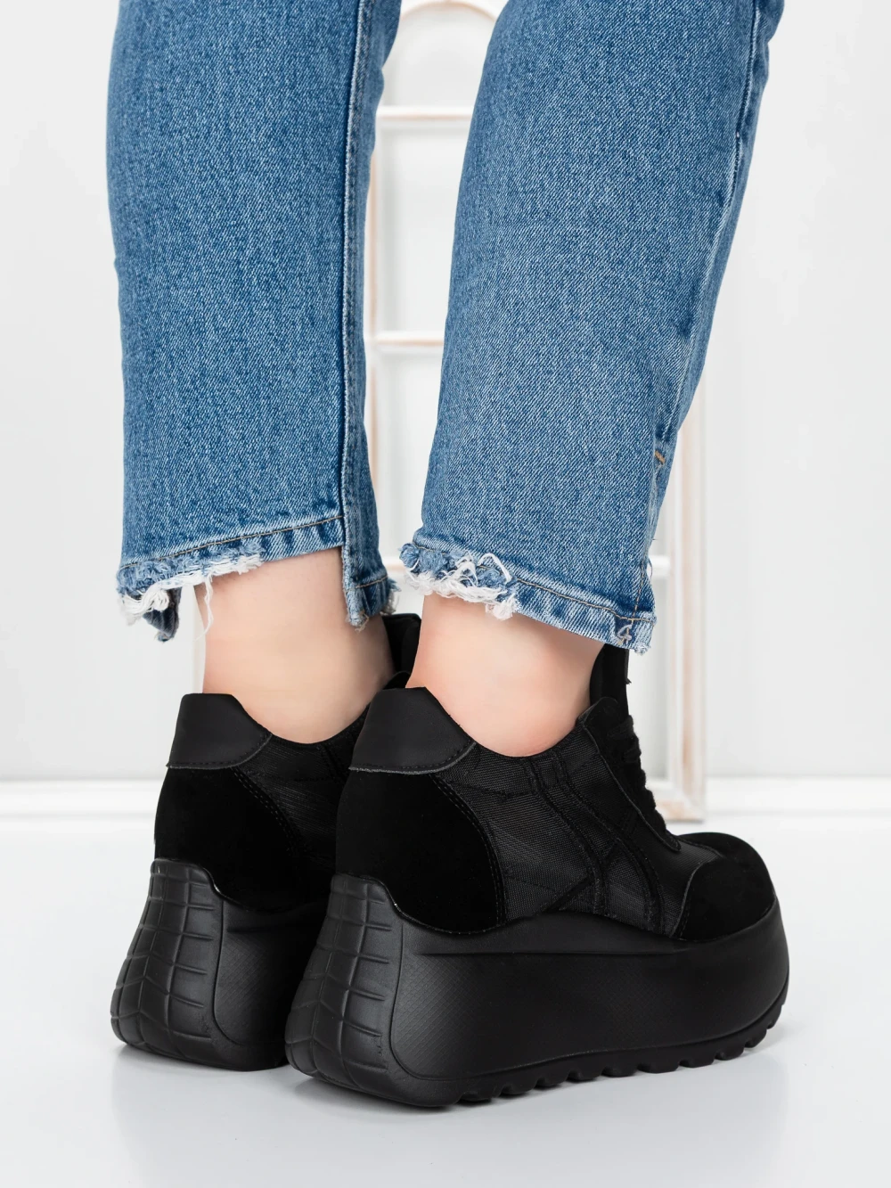Pantofi Sport Dama cu Platforma 3591-6 Negru | Mei