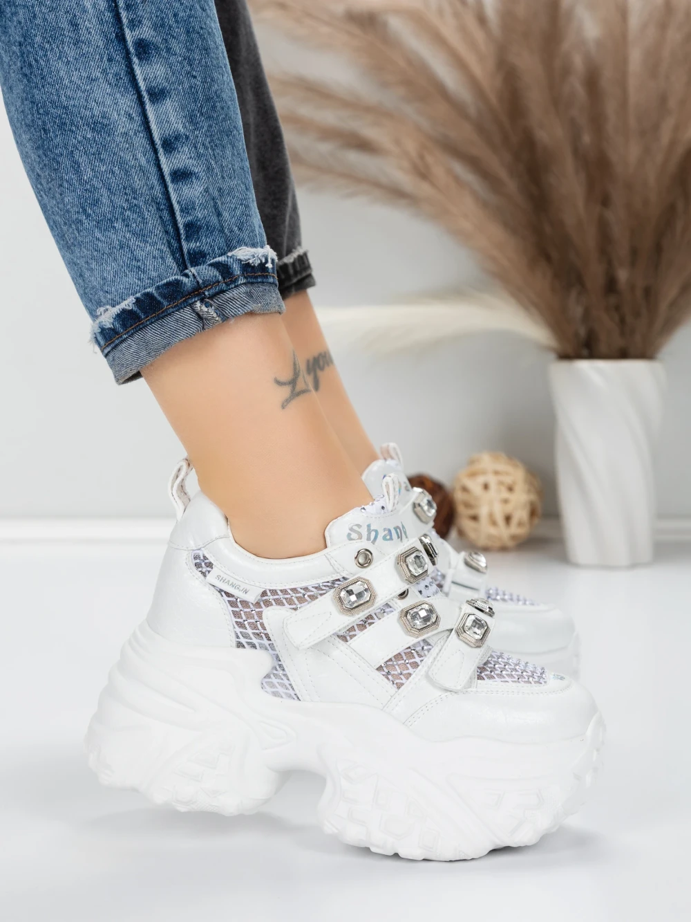Pantofi Sport Dama cu Platforma 0897-36 Alb | Mei