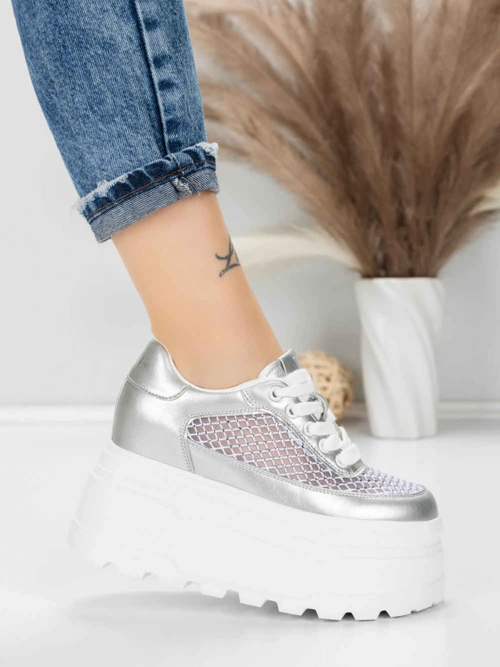 Pantofi Sport Dama cu Platforma YH23 Argintiu | Givana