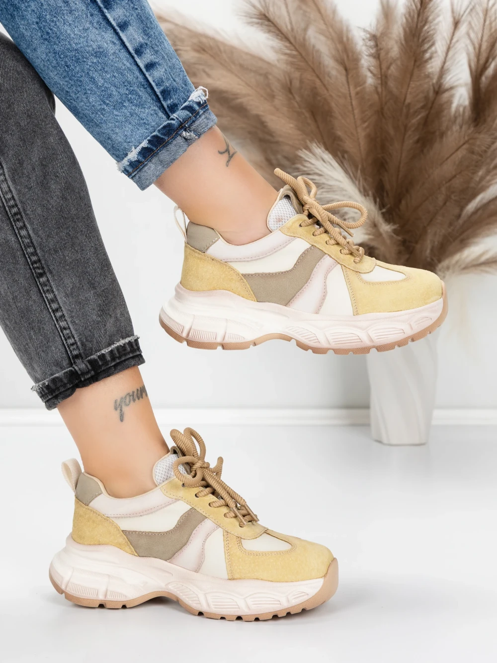 Pantofi Sport Dama din piele naturala 208 Galben | Advancer