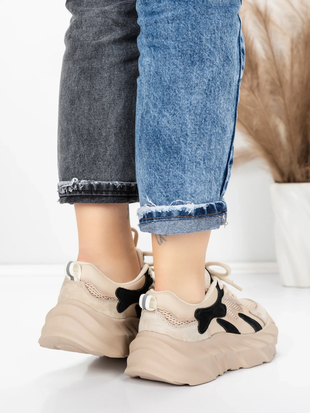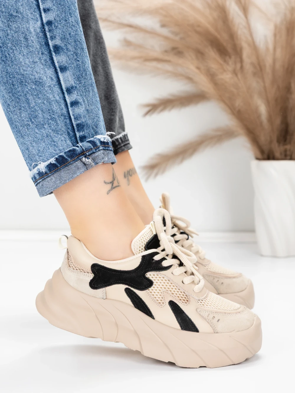 Pantofi Sport Dama din piele naturala HY1333 Gri-Crem | Franco Gerardo