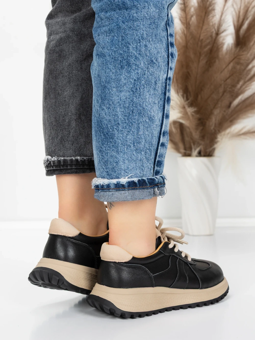 Pantofi Sport Dama din piele naturala 3A532 Negru-Crem | Advancer