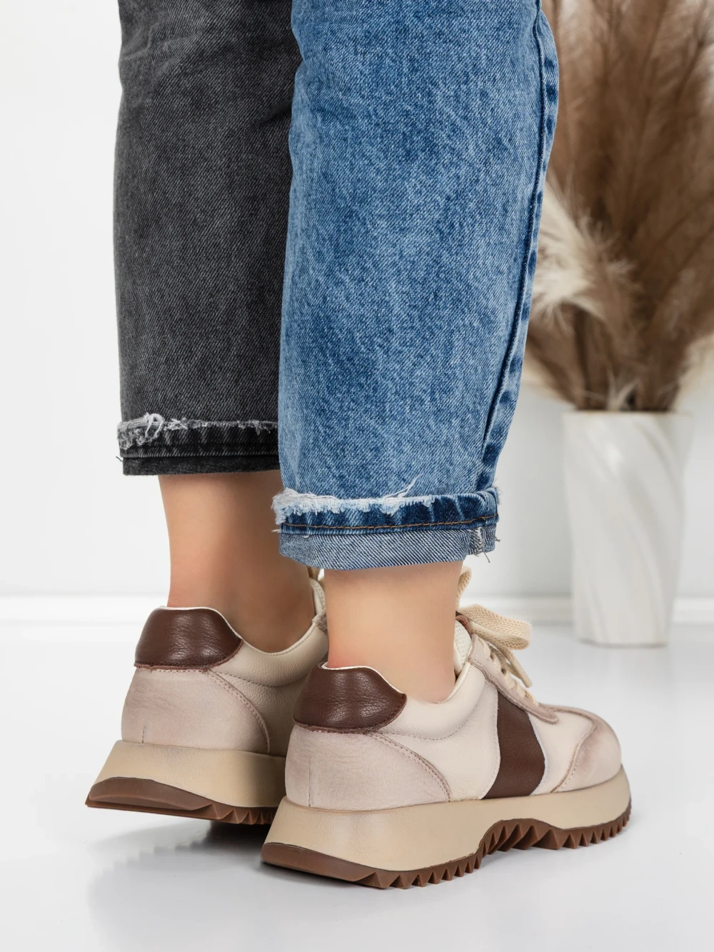 Pantofi Sport Dama din piele naturala 5SZ12 Bej | Pantoful