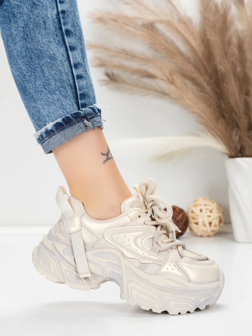 Pantofi Sport Dama din piele naturala 918-1 Champagne | Franco Gerardo